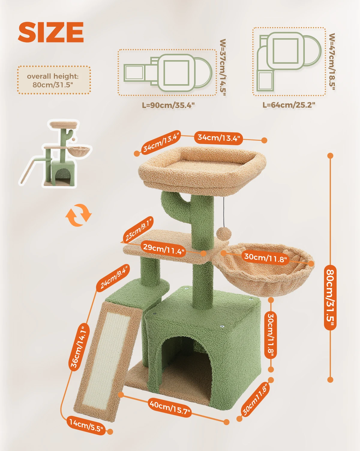 Colorful & Stylish: A green cactus cat tree, a pink cute cat tower, a purple climbing tree- three vibrant colors for you to choose to match with your home decor. This small cat tree tower can hold 2-3 cats together and is perfect for kittens to relax, sleep or climb.