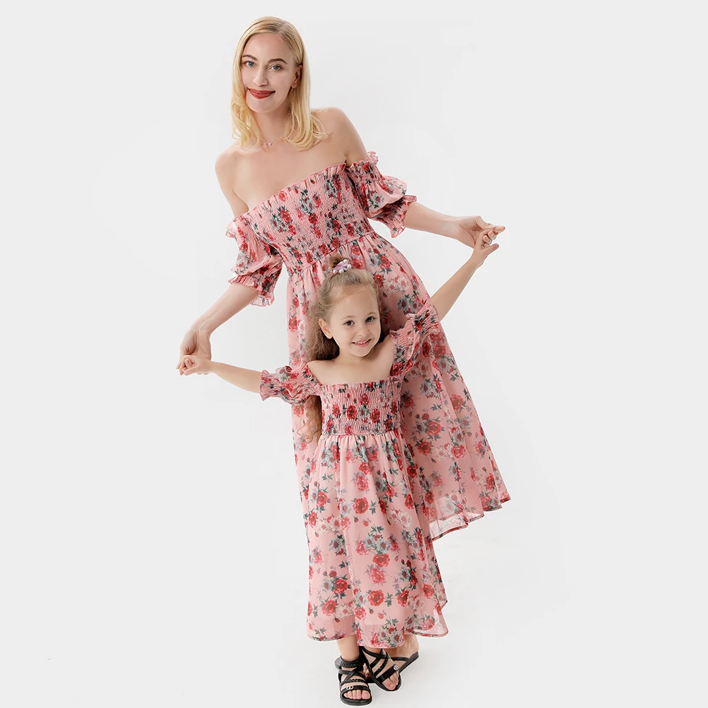 Comprar Traje a juego para madre e hija, vestido de gasa con tirantes para madre e hija, verano, 2022