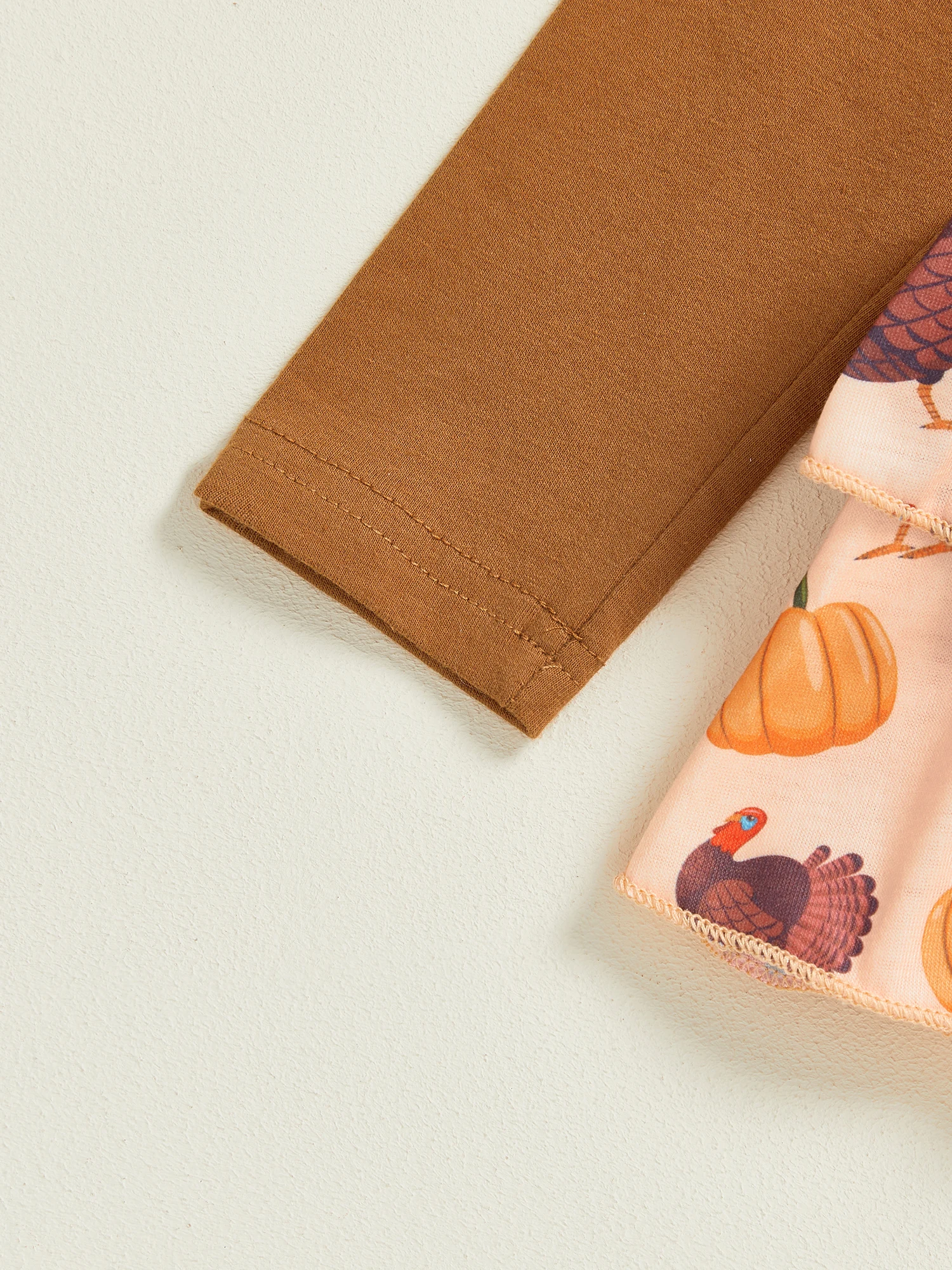 Conjunto de 2 piezas para niña de Acción de Gracias, vestido mameluco de manga larga con volantes y diadema con lazo