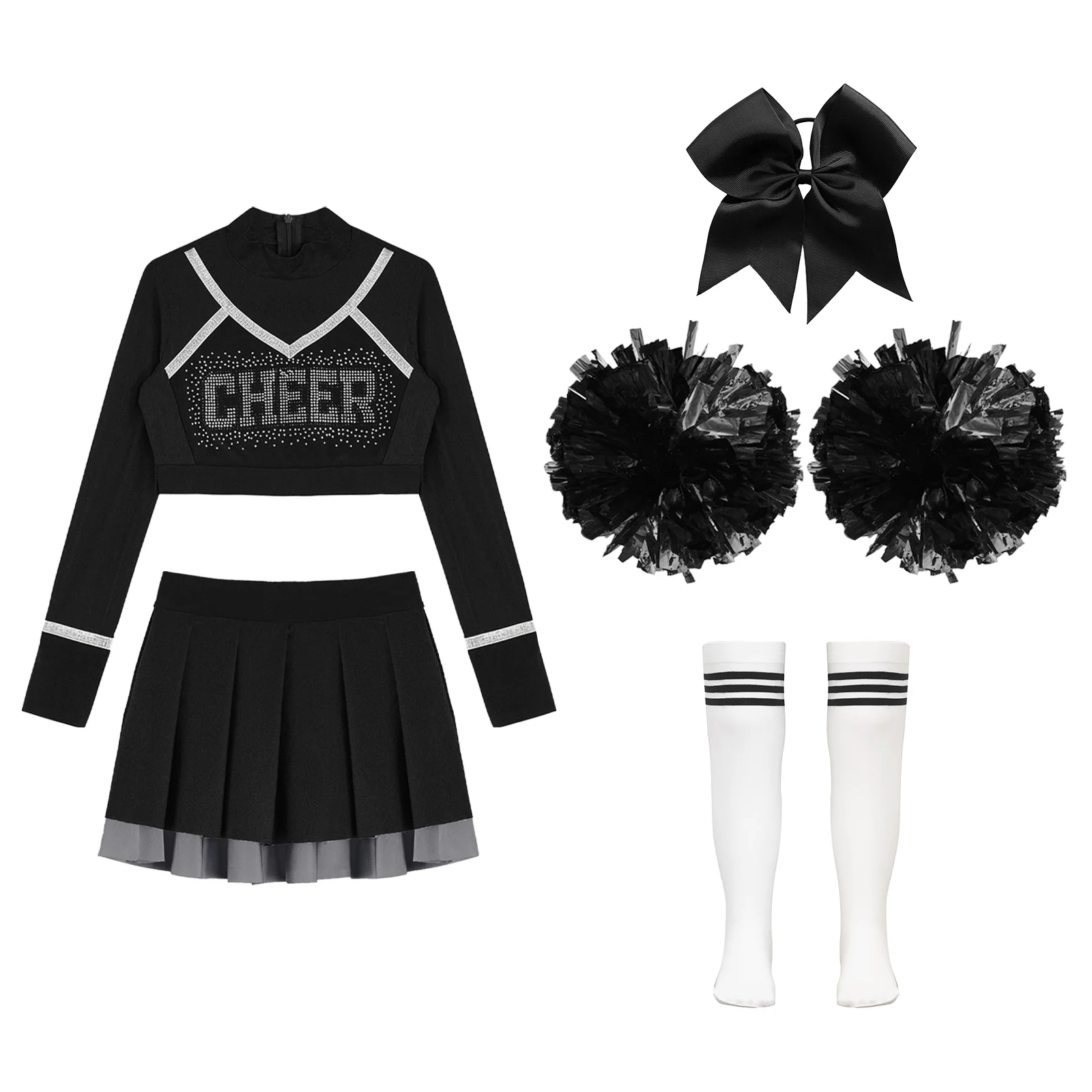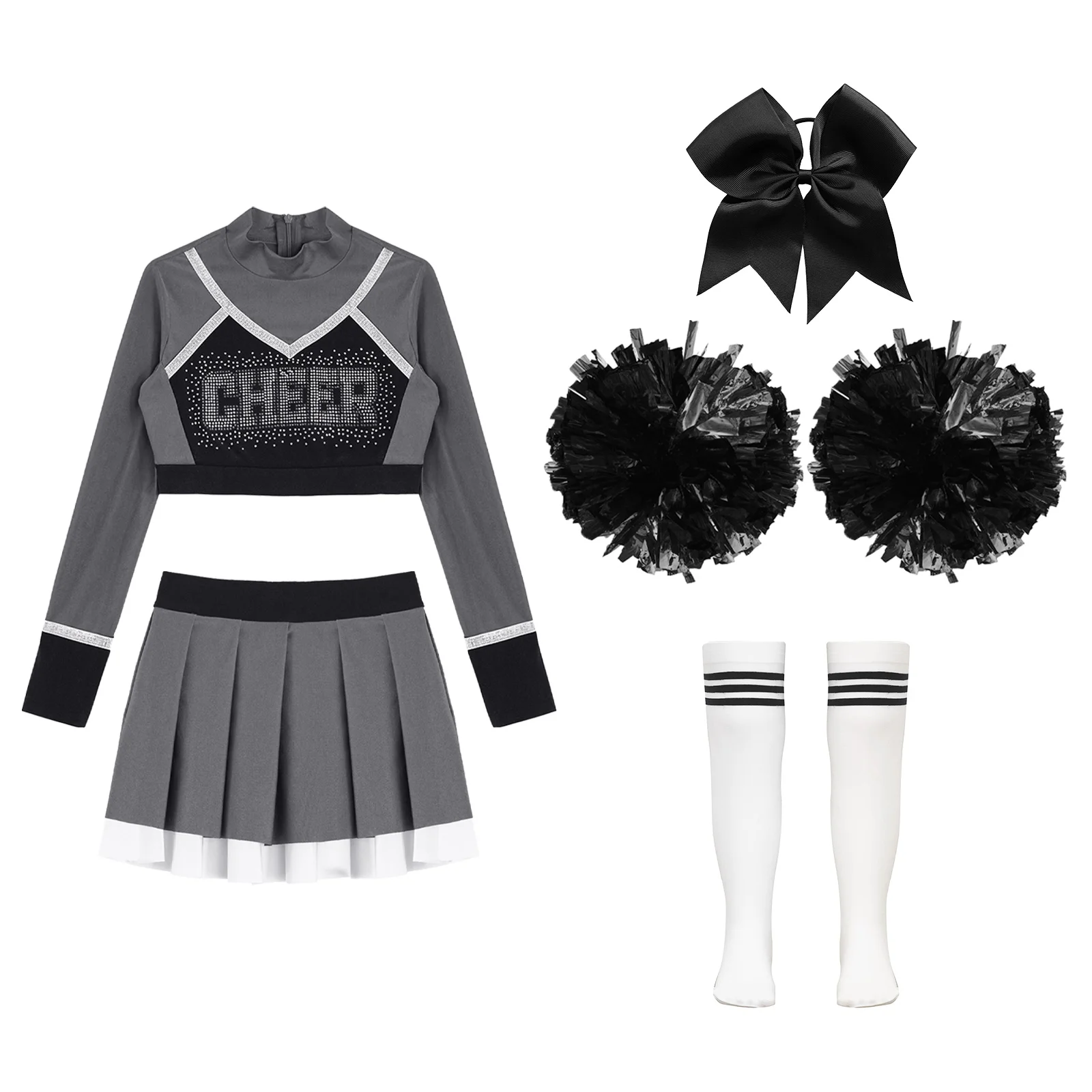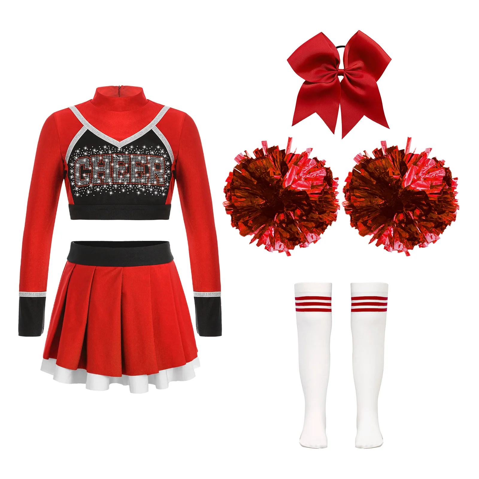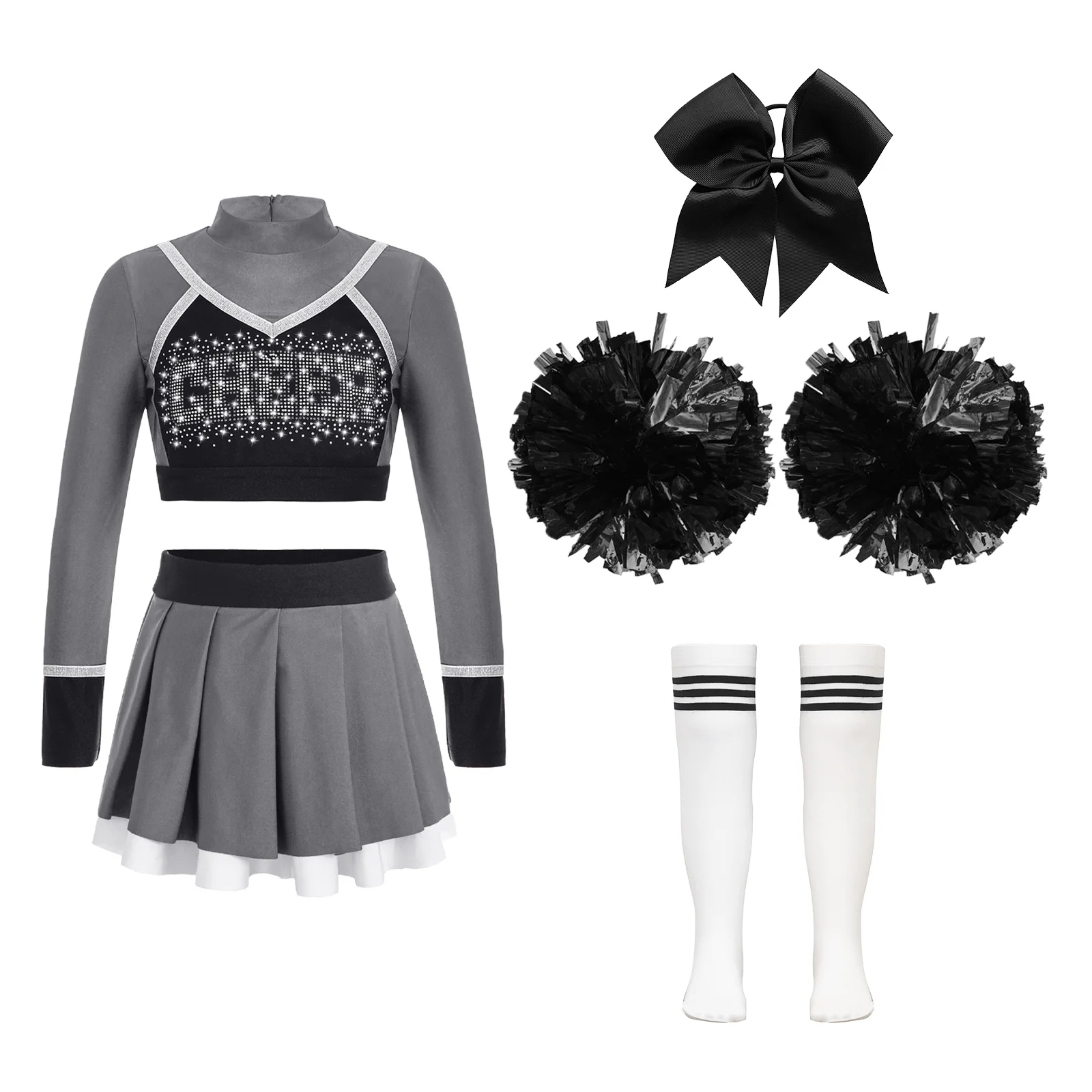 Las camisetas de baile de porristas para niñas con estampado de letras de diamantes de imitación brillantes hacen que su hijo sea llamativo entre la multitud.