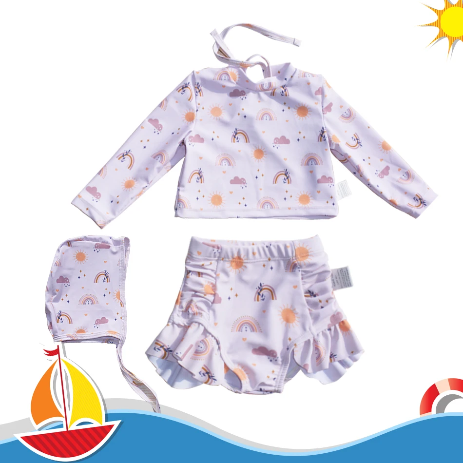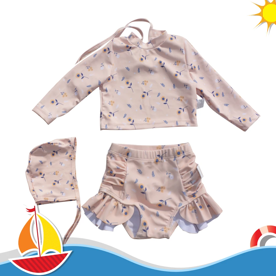 Traje de baño estampado de moda de alta calidad para niñas, ropa de natación, ropa de playa de manga larga, traje de baño de dos piezas