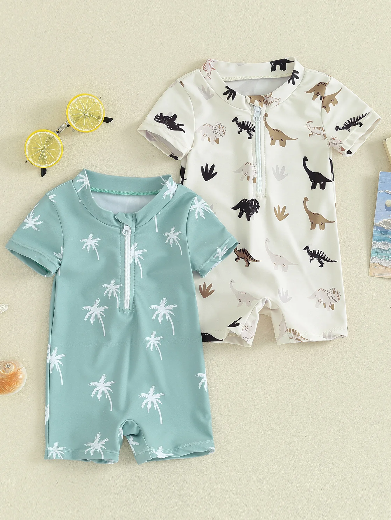 Traje de baño de manga larga con protección solar para niños, traje de baño de secado rápido con dinosaurio para bebés y niños pequeños, traje de baño para piscina y playa