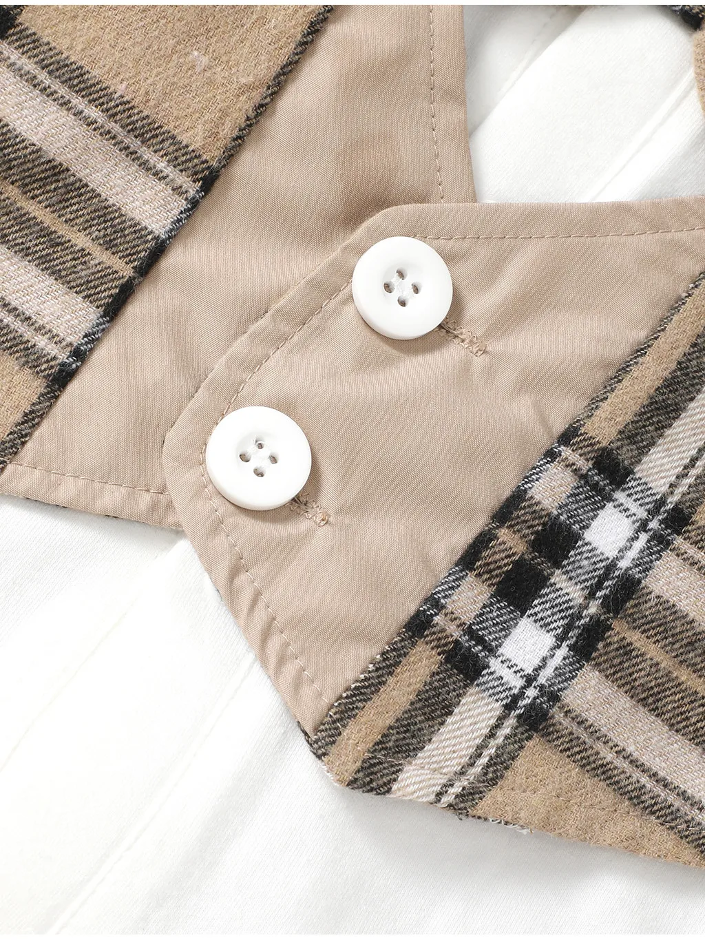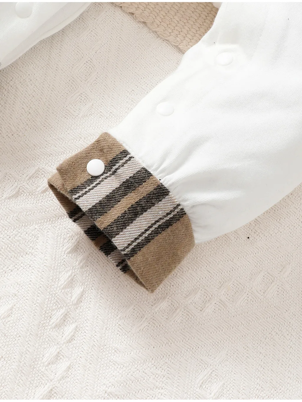 Comprar Traje de caballero para bebé de 3 a 24 meses, traje a cuadros, mono con sombrero, trajes de boda para bebé, conjunto baptismal, 2 uds.