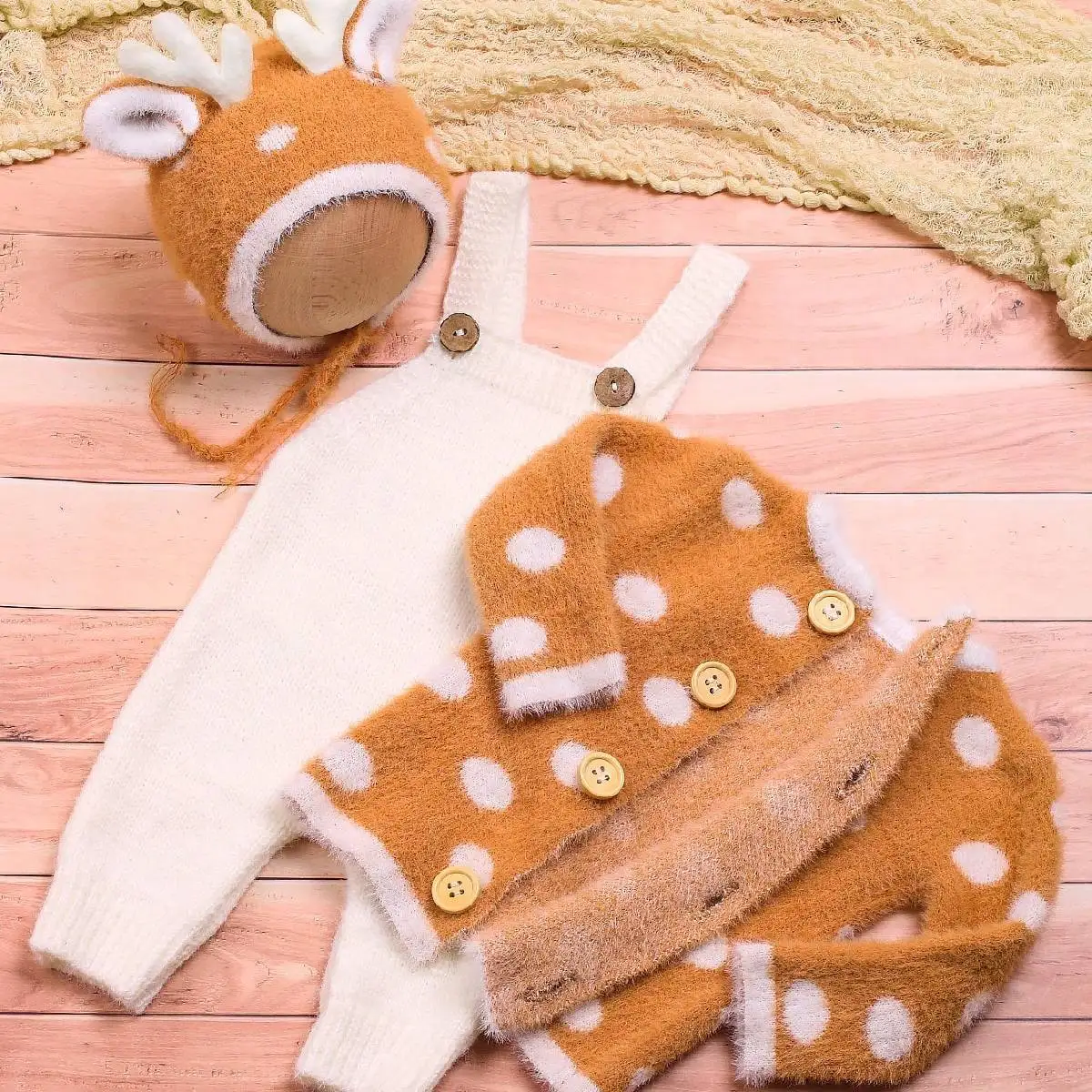Comprar Traje de fotografía de Navidad para recién nacido, mono tejido de piel de visón de imitación, conjunto de gorro de cuerno de ciervo con lunares