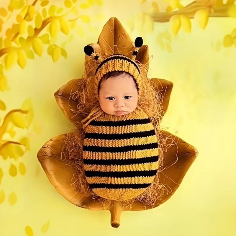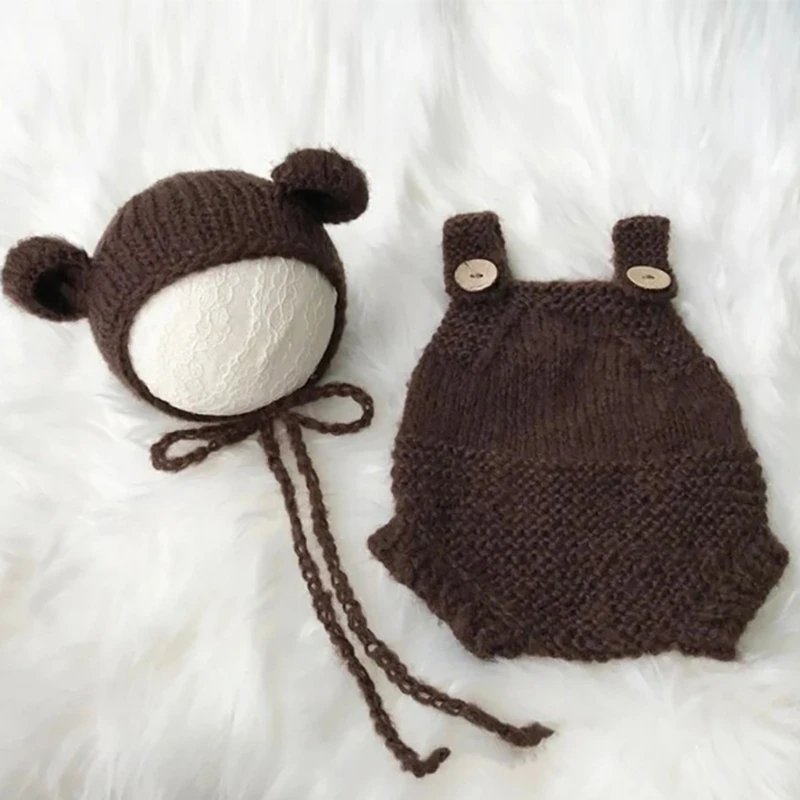 Traje de fotografía de punto de ganchillo para bebé recién nacido, Pelele de sesión de fotos + conjunto de sombrero, accesorios de fotografía para recién nacidos, accesorios de atuendo