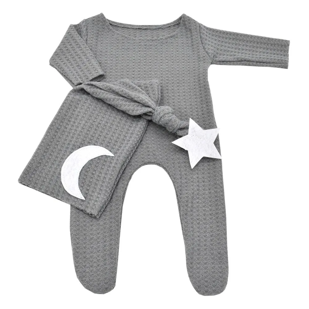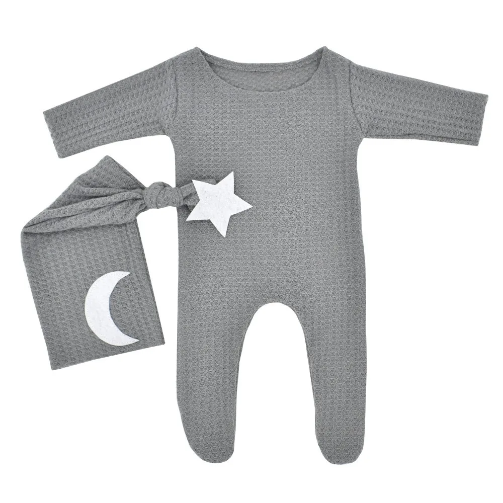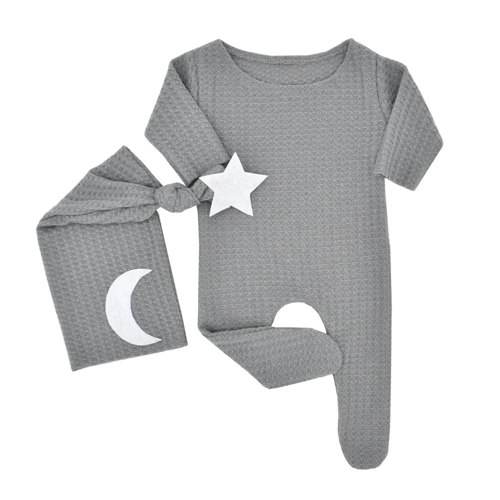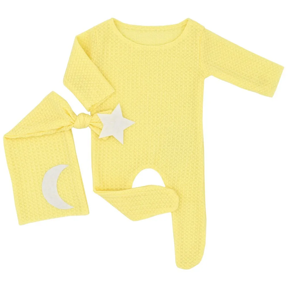 Comprar Traje de fotografía para recién nacido, mono de punto con decoración de luna y estrella, conjunto de dos piezas con gorro de cola larga, traje de fotografía de estudio