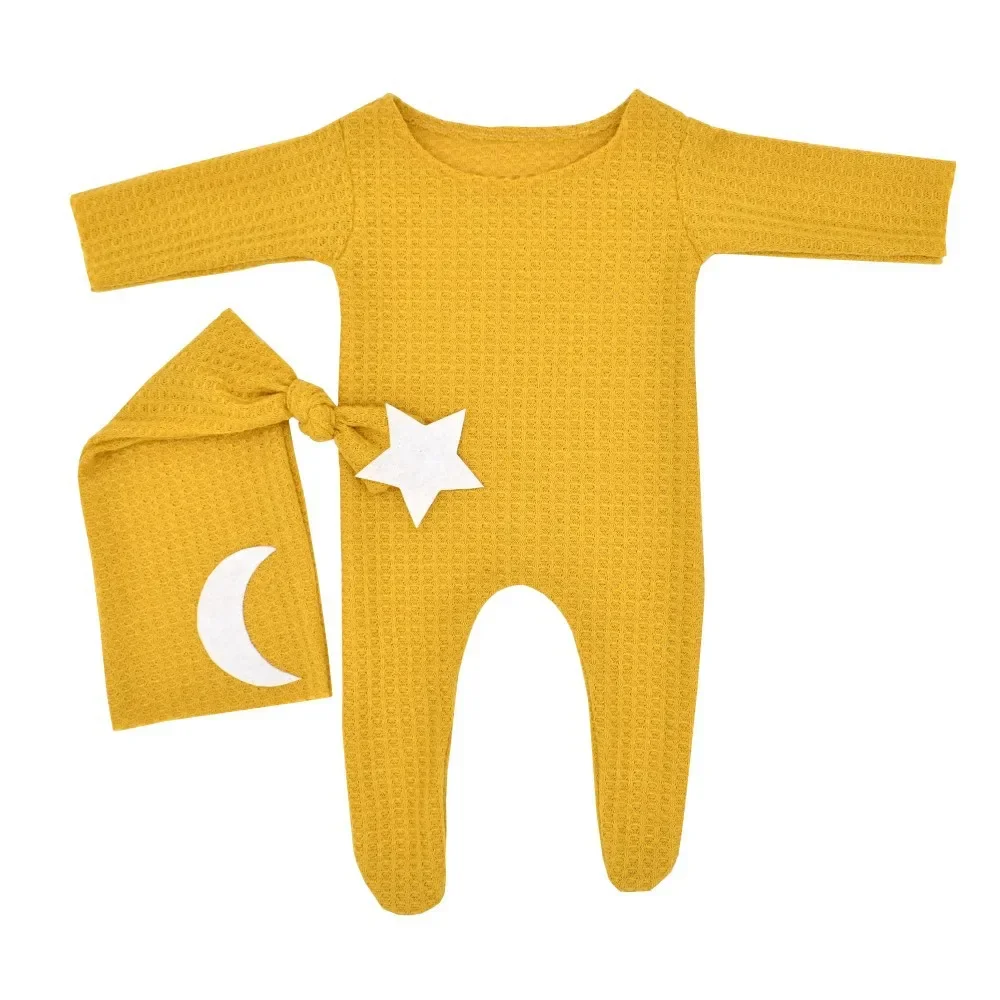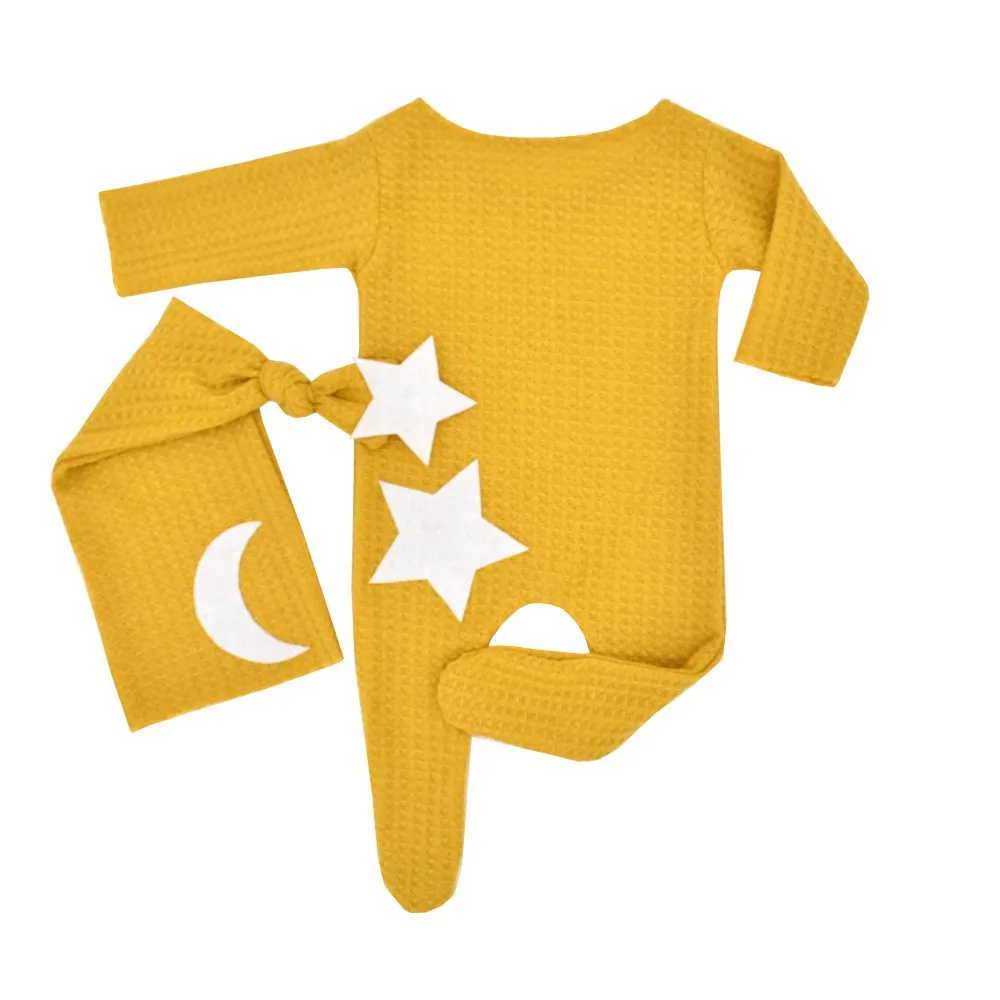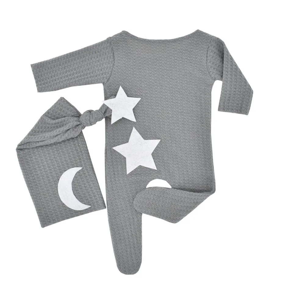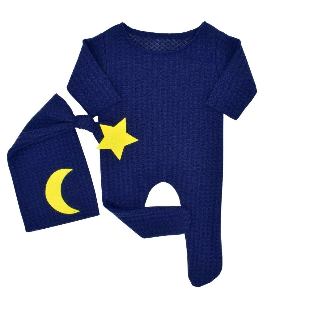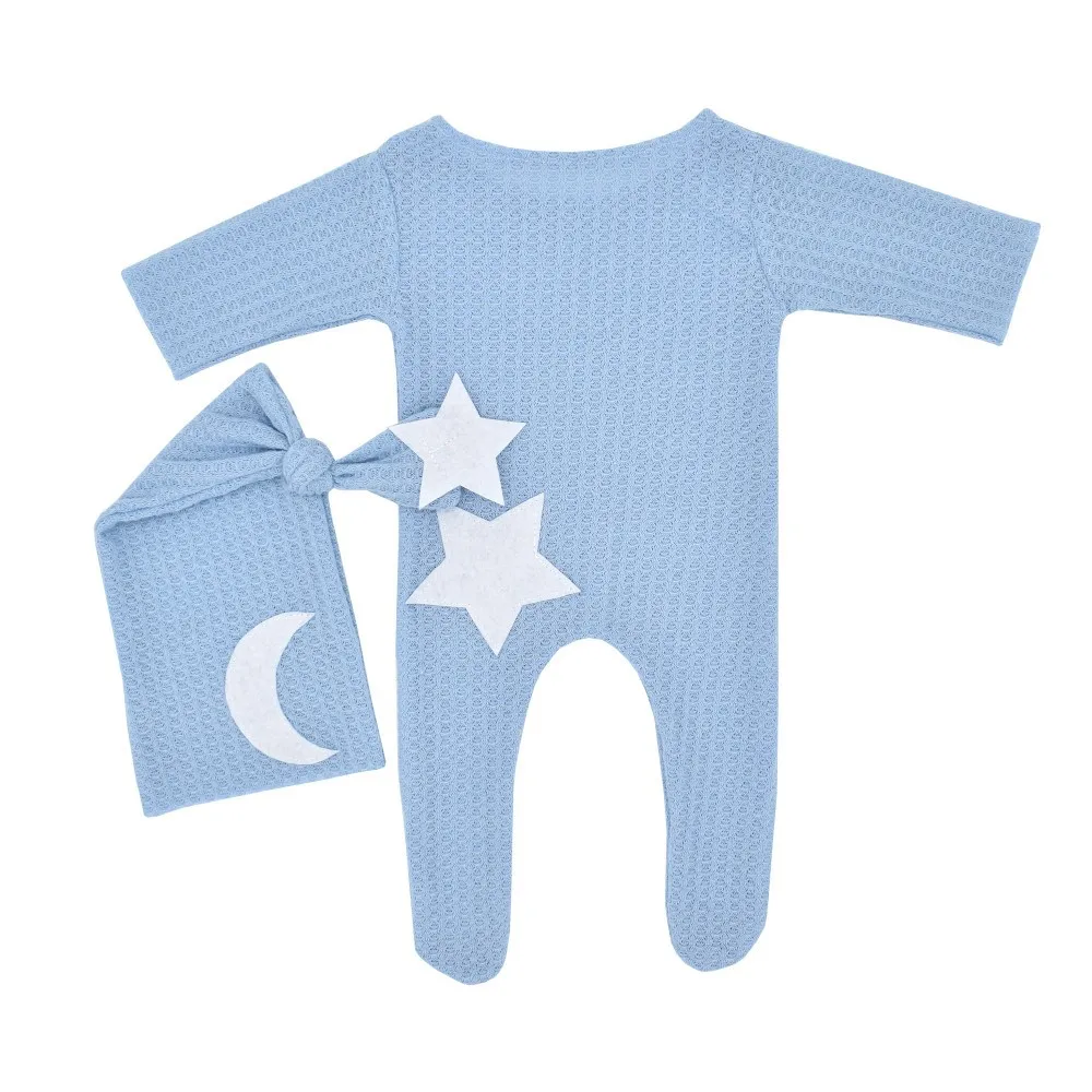 Comprar Traje de fotografía para recién nacido, mono de punto con decoración de luna y estrella, conjunto de dos piezas con gorro de cola larga, traje de fotografía de estudio