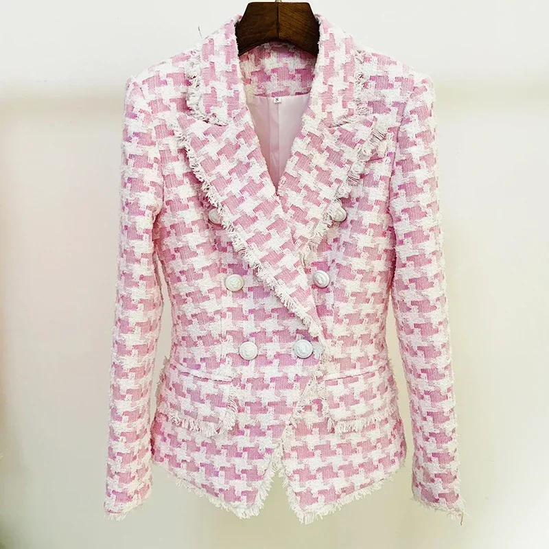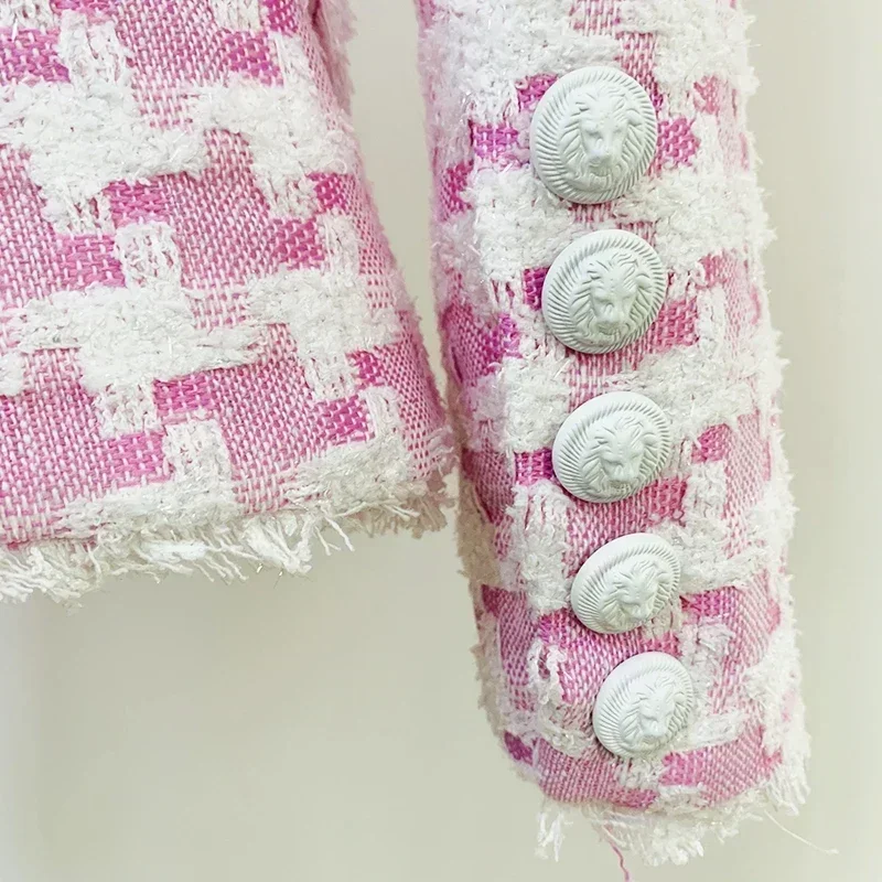 Traje informal rosa para mujer, abrigo personalizado de lujo con botón de cabeza de león, primavera y verano, el mismo estilo