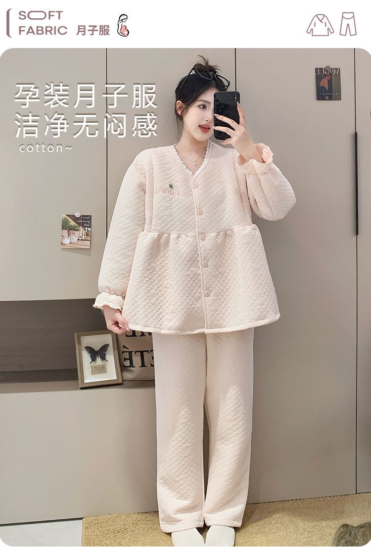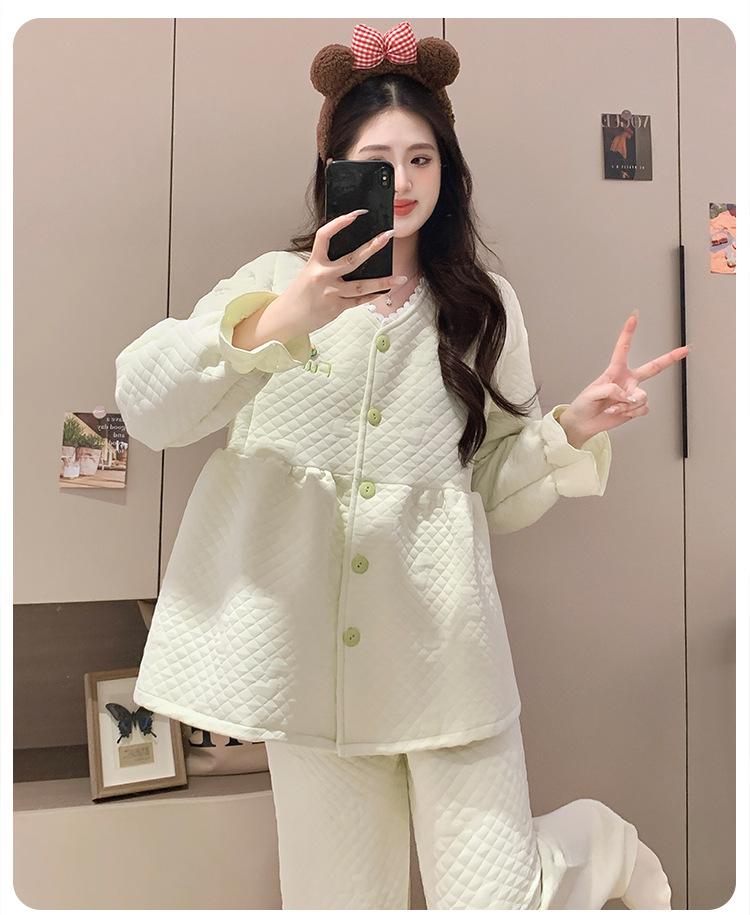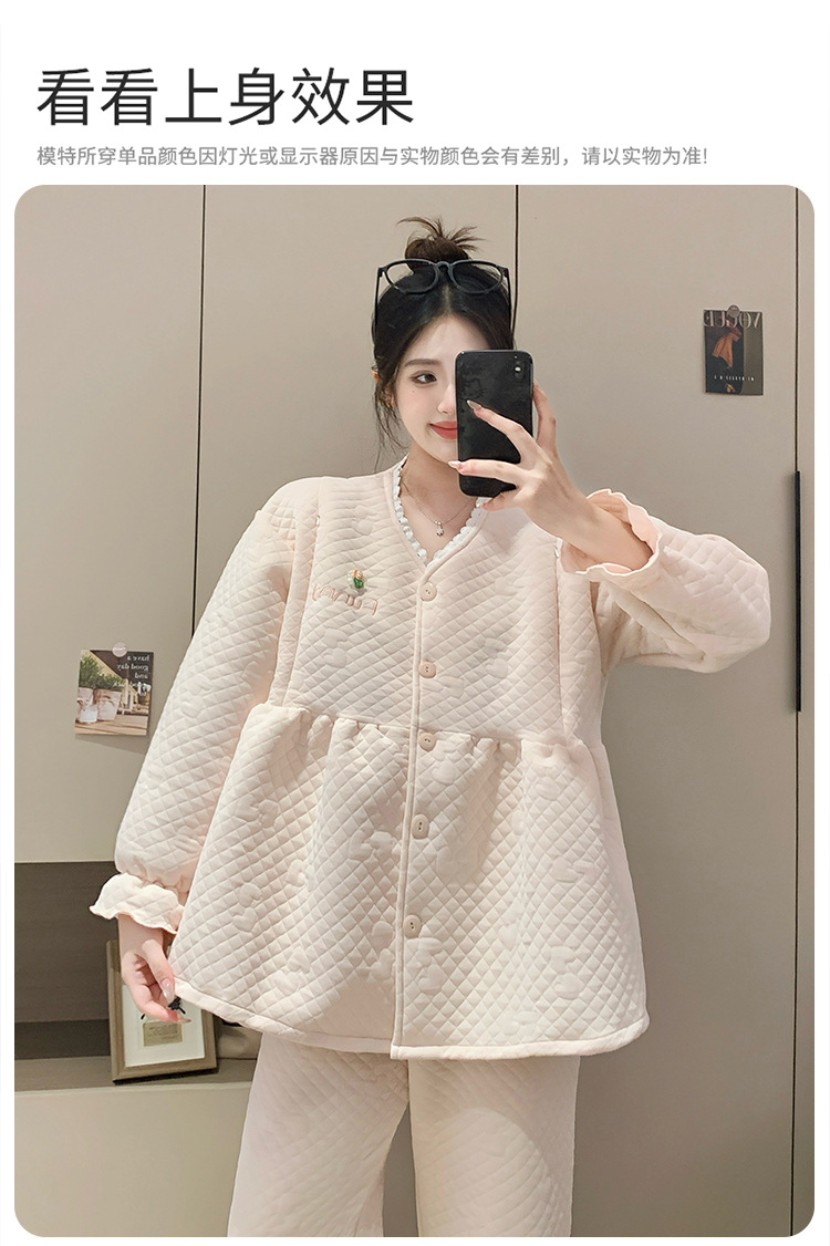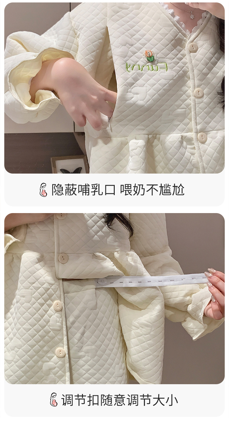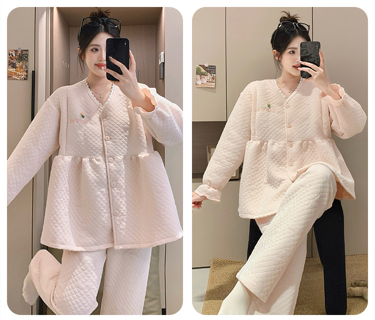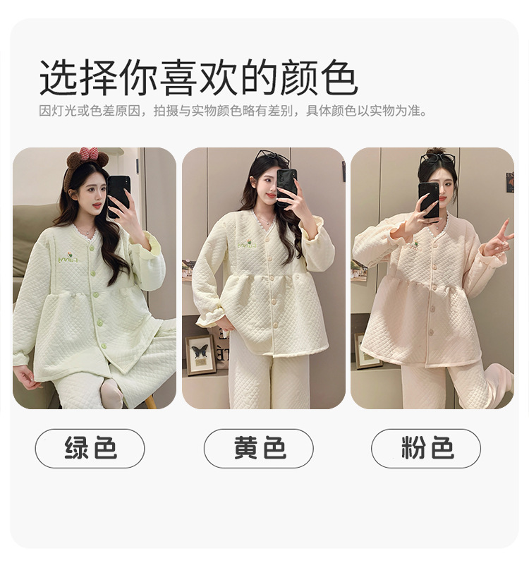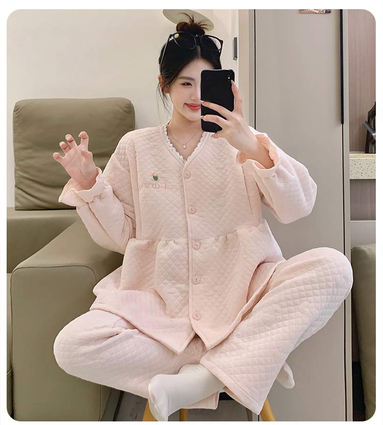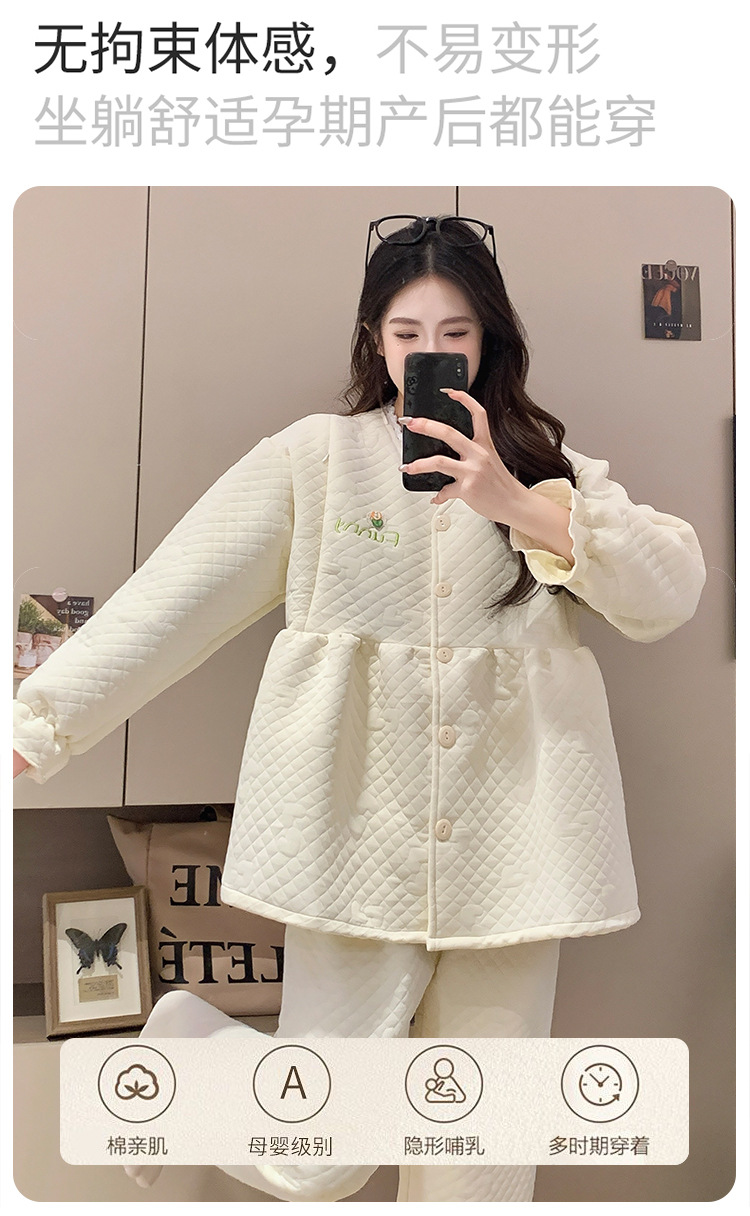 Traje de mes de lactancia sándwich de algodón de aire, pijamas gruesos de invierno para mujeres embarazadas, pijamas cálidos posparto para amamantar
