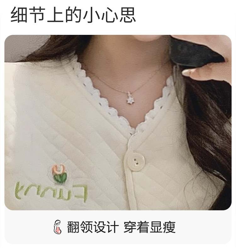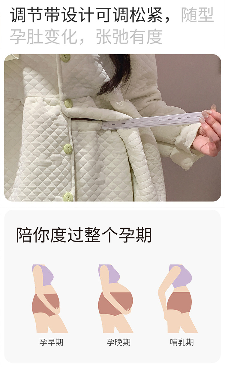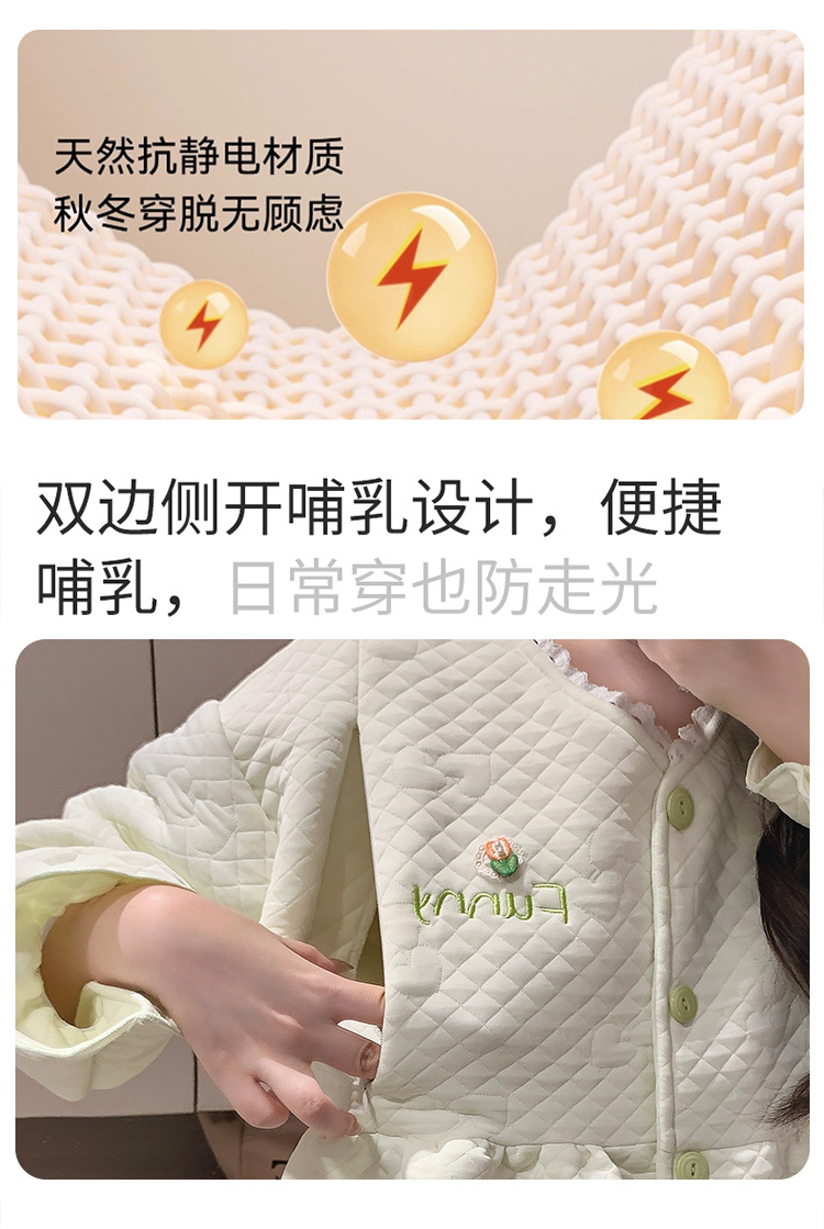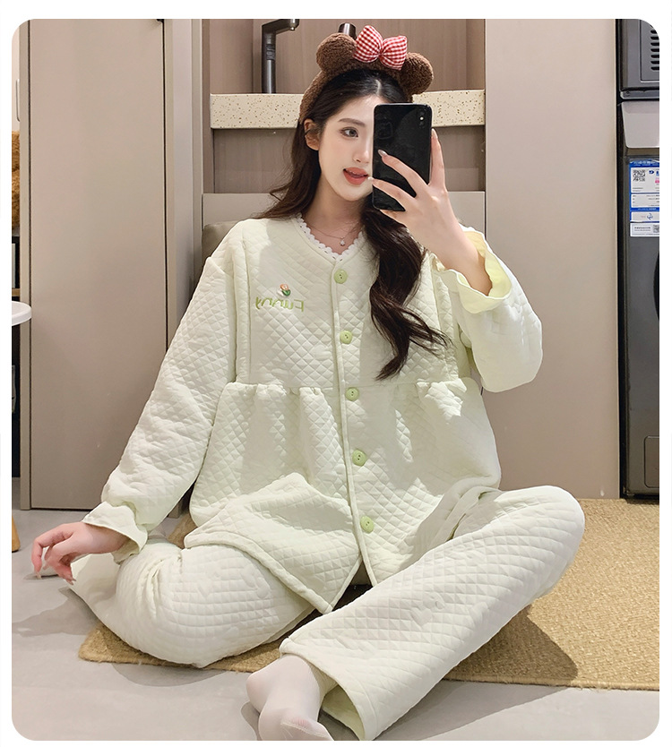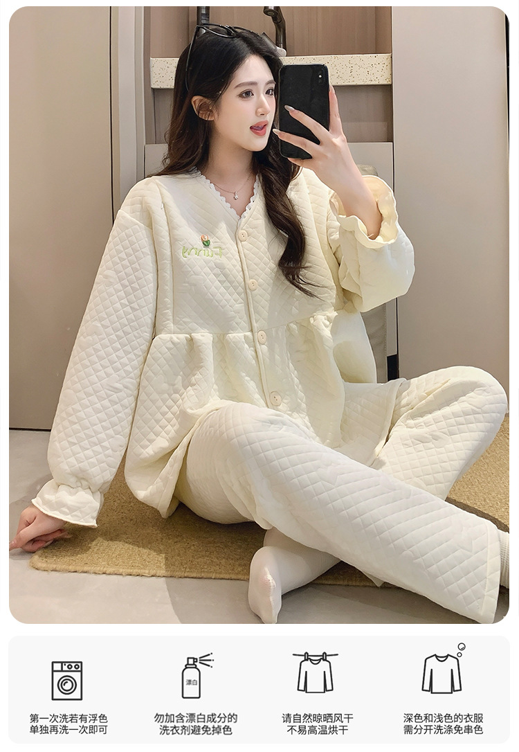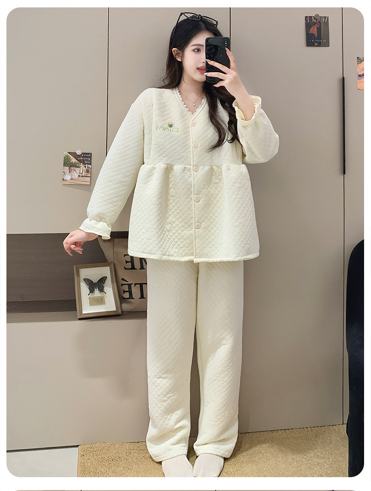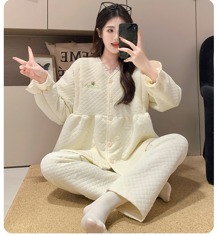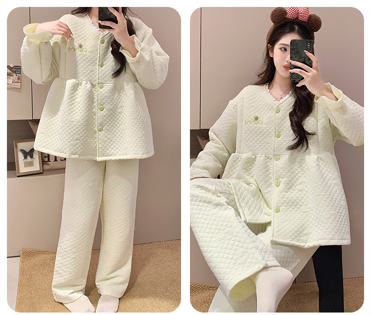 Traje de mes de lactancia sándwich de algodón de aire, pijamas gruesos de invierno para mujeres embarazadas, pijamas cálidos posparto para amamantar