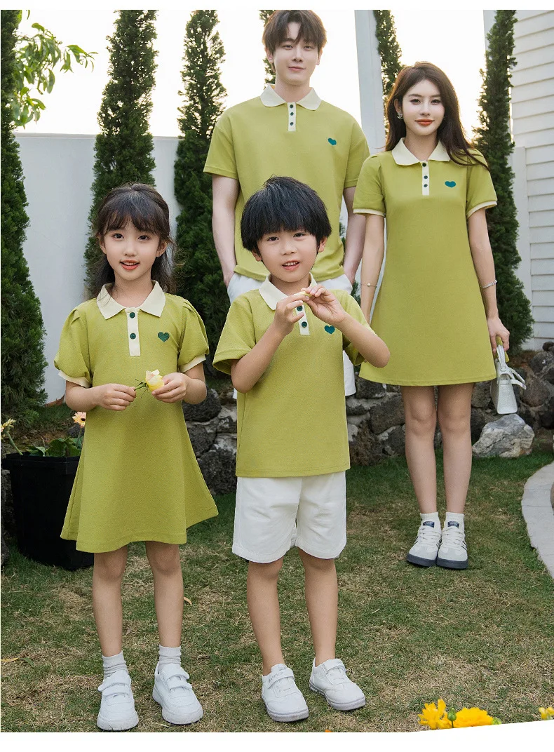 Comprar Traje para padres e hijos, traje de verano, familia de tres POLO, traje familiar, vestidos para madre e hija, pantalón corto informal, camiseta de manga