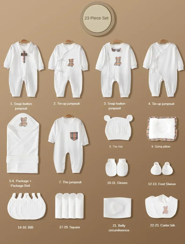 Caja de regalo para bebé recién nacidoEsta es una prenda especialmente diseñada para recién nacidos y bebés.Está confeccionado con tejido 100% puro algodón de alta calidad y especialmente diseñado para bebés de 0 a 3 meses.Se adapta bien al cuerpo y la tela es suave, sin formaldehído y sin fluorescentes, cumpliendo con los estándares de Clase A para ropa de bebé.Hay varias combinaciones en la caja de regalo, que incluyen 23 piezas, 21 piezas y 19 piezas, cada una que contiene de 3 a 5 juegos de ropa, gorros para bebés, calcetines para bebés, almohadas, mantas para bebés y otros artículos pequeños;El conjunto se divide en cuatro estaciones y estilos otoñal/invierno.Las cuatro estaciones son adecuadas para usar con un grosor normal, mientras que los estilos otoño/invierno son más gruesos y cálidos.¡Puedes elegir según el clima local! La ropa es preciosa y hermosa, ya sea que la prepare para tu propio bebé o para los bebés de familiares y amigos, ¡esta es una muy buena opción! Finalmente, ¡les deseo una agradable experiencia de compra!