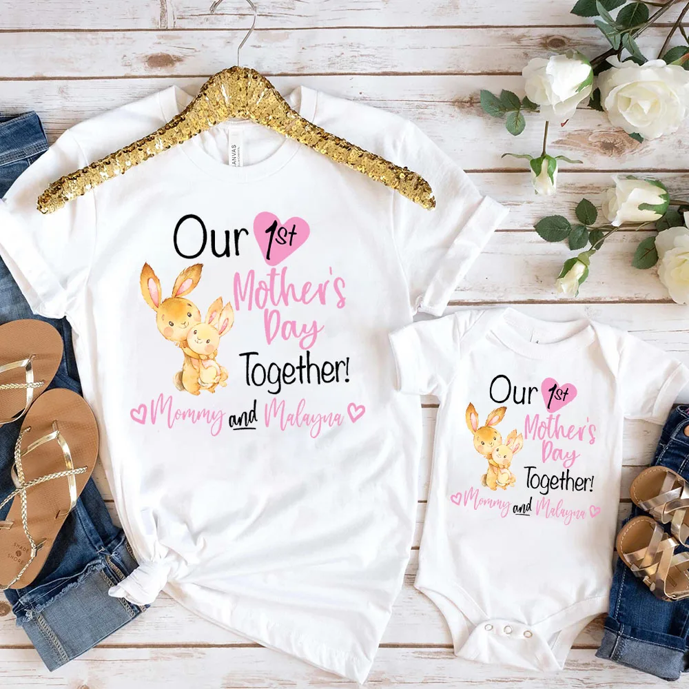 Trajes a juego personalizados para el primer día de la madre, ropa a juego para la familia, camisa para mamá, pelele para bebé, regalo para el día de la madre
