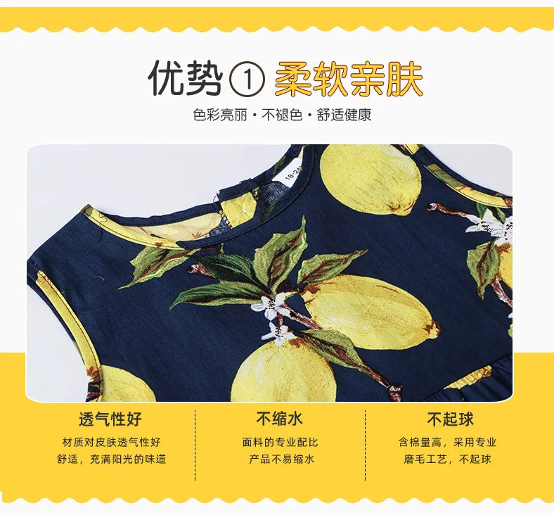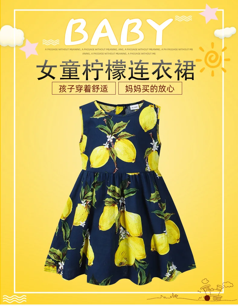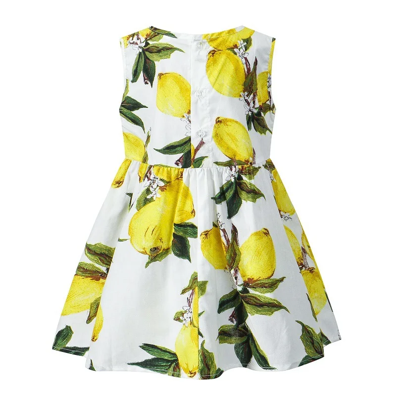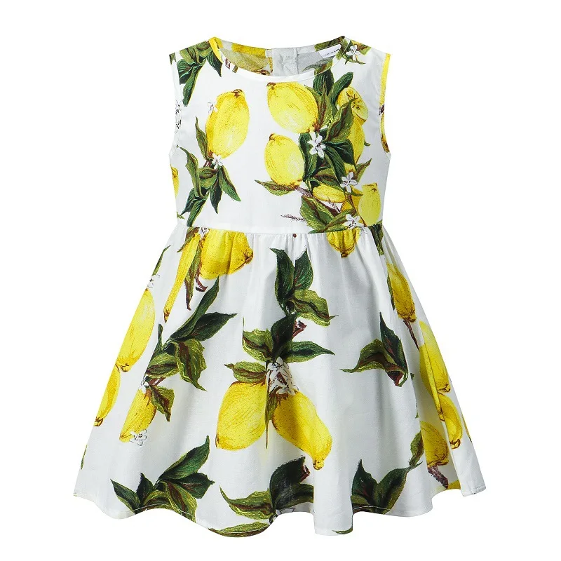 Trajes de verano para niñas pequeñas, vestidos coreanos bonitos sin mangas de algodón con estampado de limón, ropa de playa para bebés, BC560, 2024
