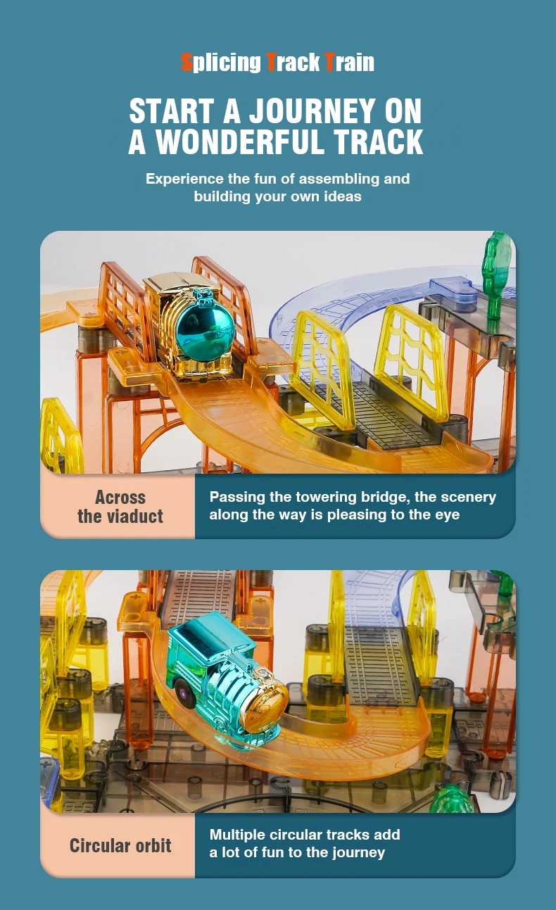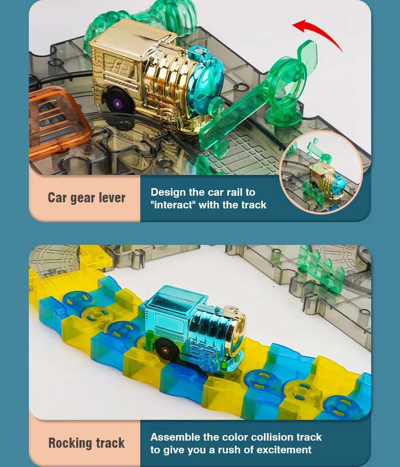 3.Posibilidades infinitas de seguimiento: Race Track Set es una forma divertida para que niños y niñas amplíen su curiosidad intelectual y creatividad explorando muchas posibilidades.