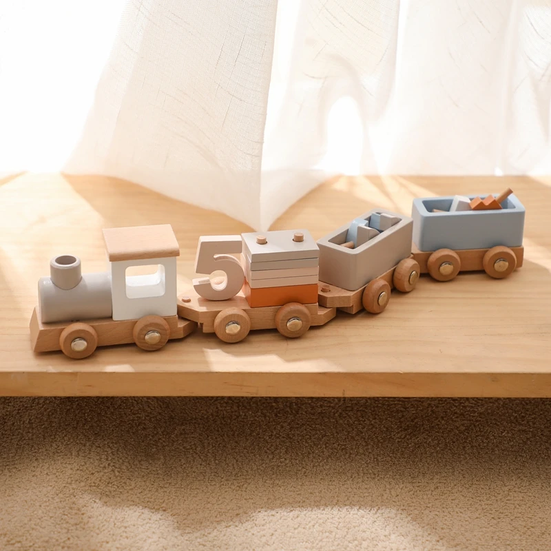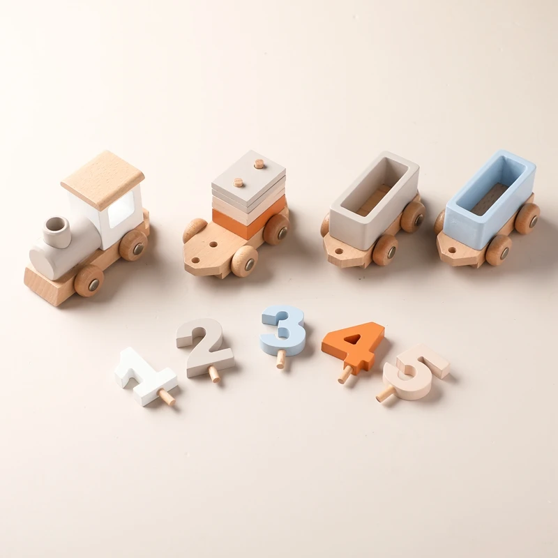 Tren de madera, juguete de cumpleaños, juguetes Montessori, juguetes educativos para bebés, carrito de madera, número de juguetes para bebés, juguetes de aprendizaje para bebés