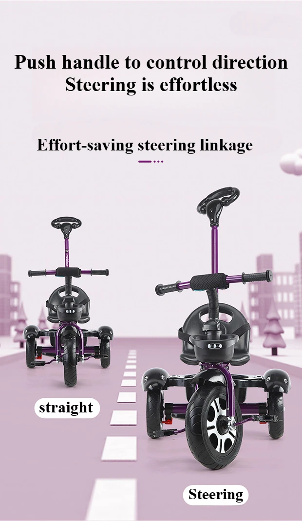 【Asiento ajustable】Los triciclos para niños tienen una gran área de asiento y un cómodo respaldo del asiento, en comparación con otros triciclos para niños pequeños.Funciona con asientos ajustables hacia adelante y hacia atrás, lo que le brinda una mayor edad de uso y mantiene a su hijo en la mejor posición de conducción.