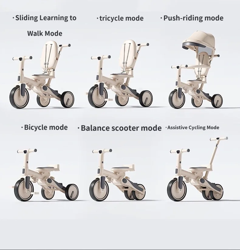 Triciclo para bebé, bicicleta de 1 a 3 años, cochecito de bebé 6 en 1, bicicleta con Pedal para niño, puede sentarse, paseo o empujar, triciclo multifunción