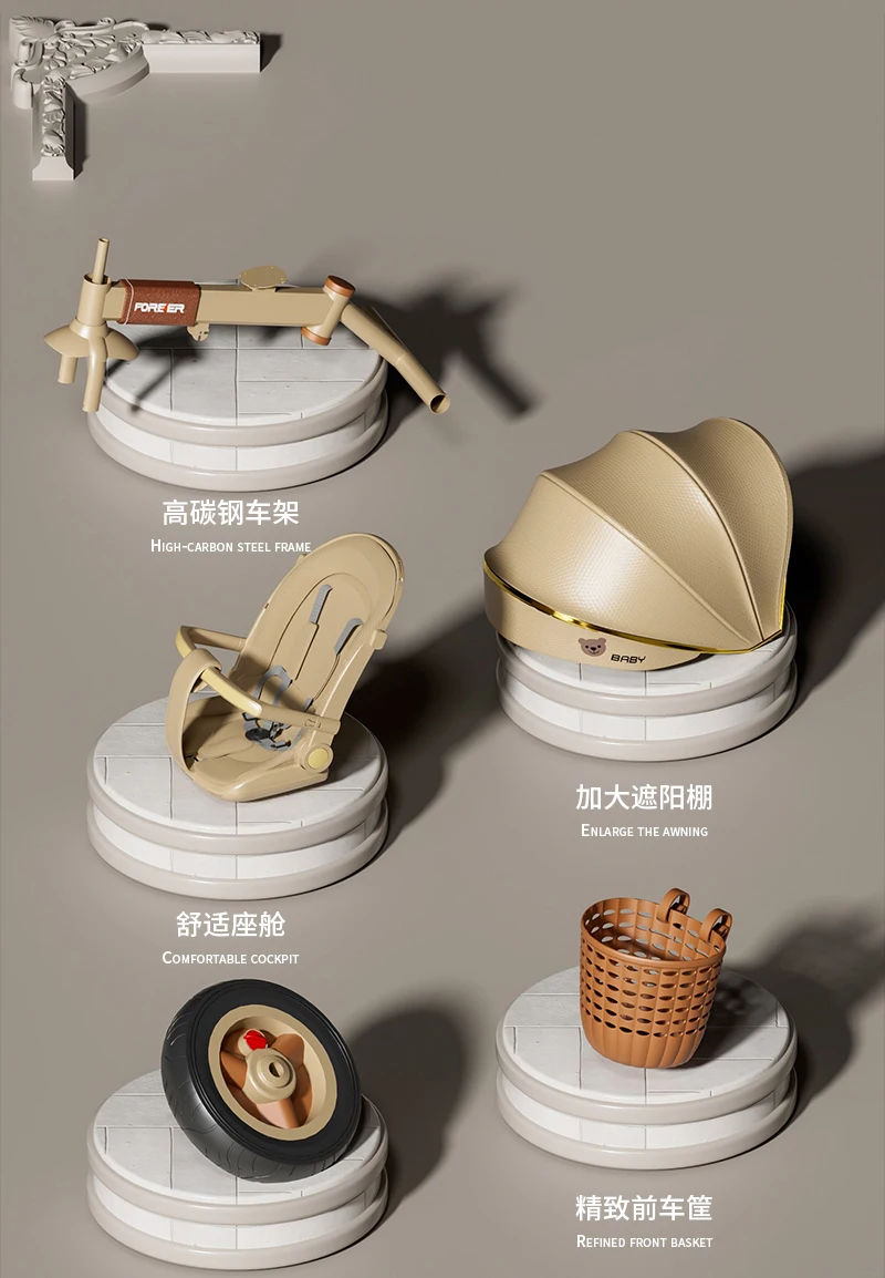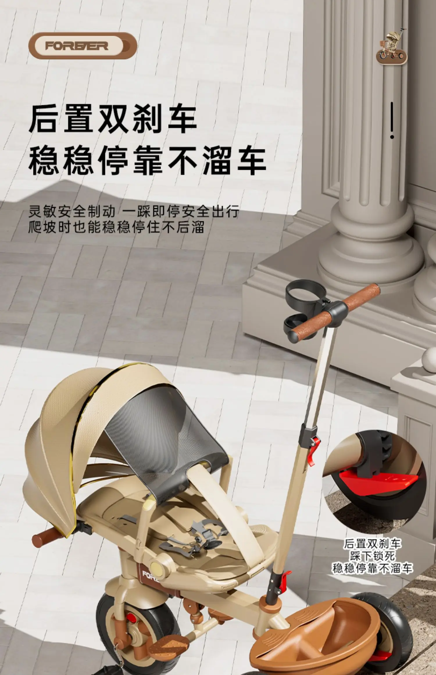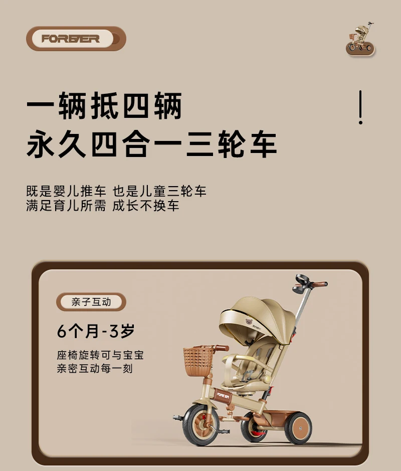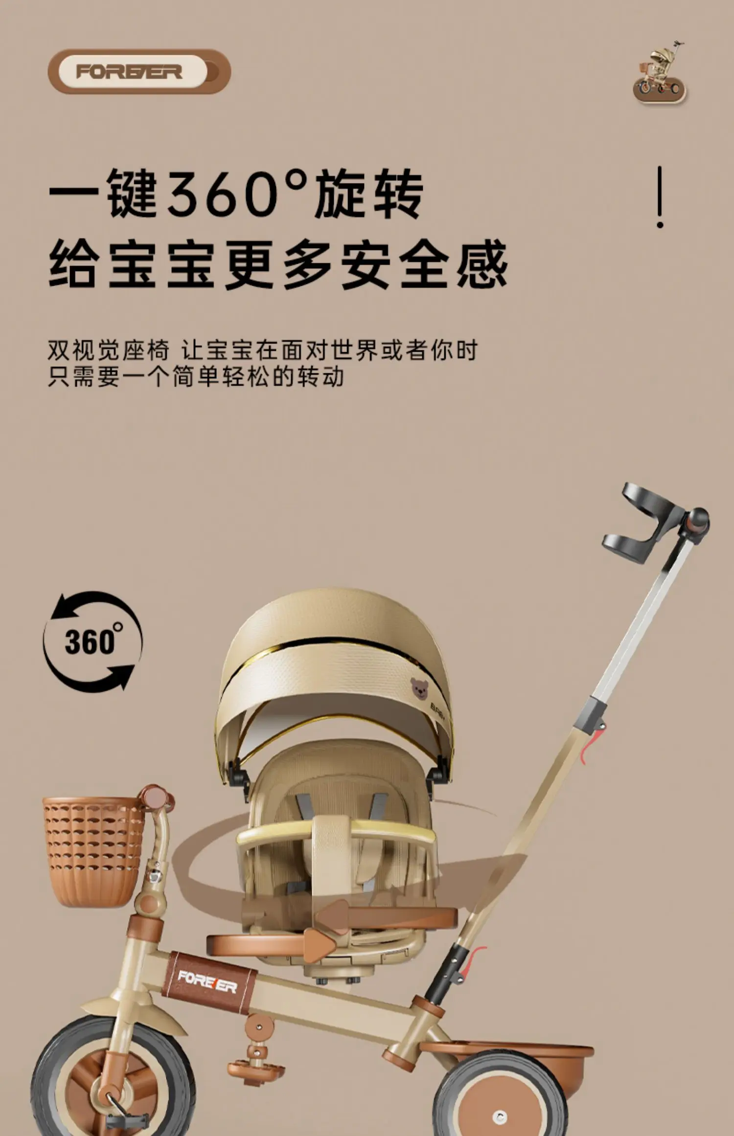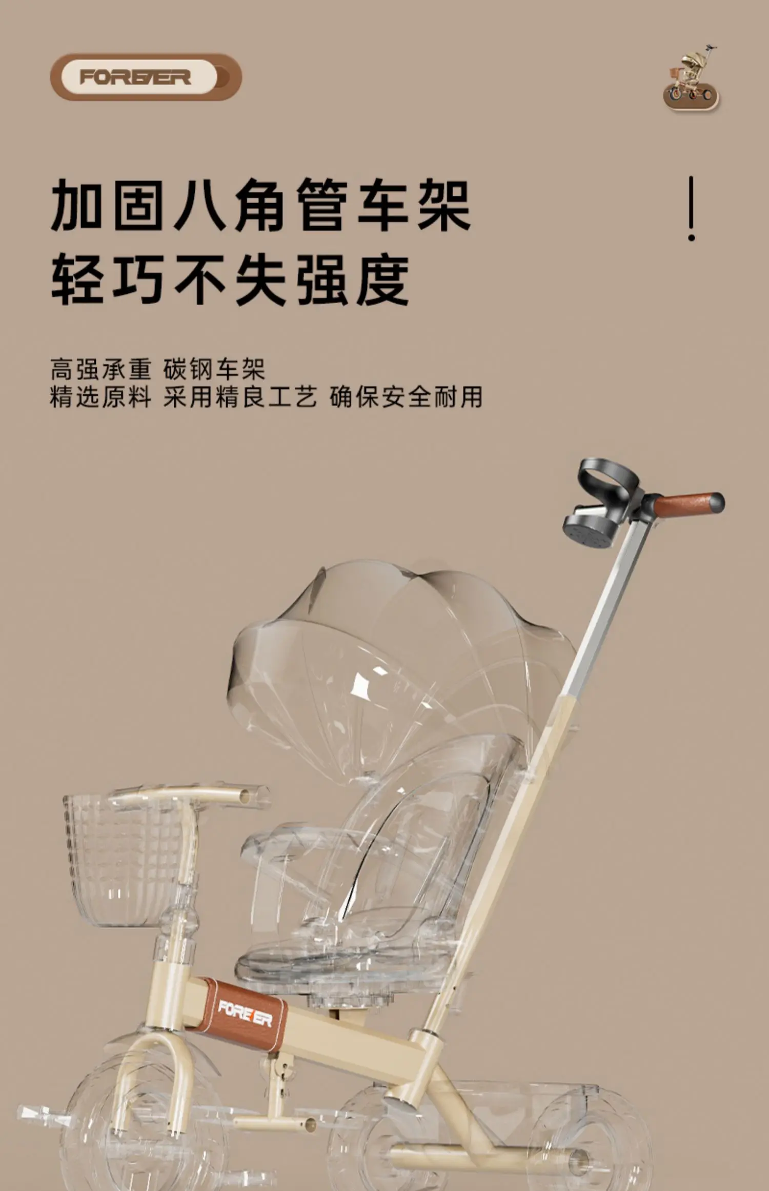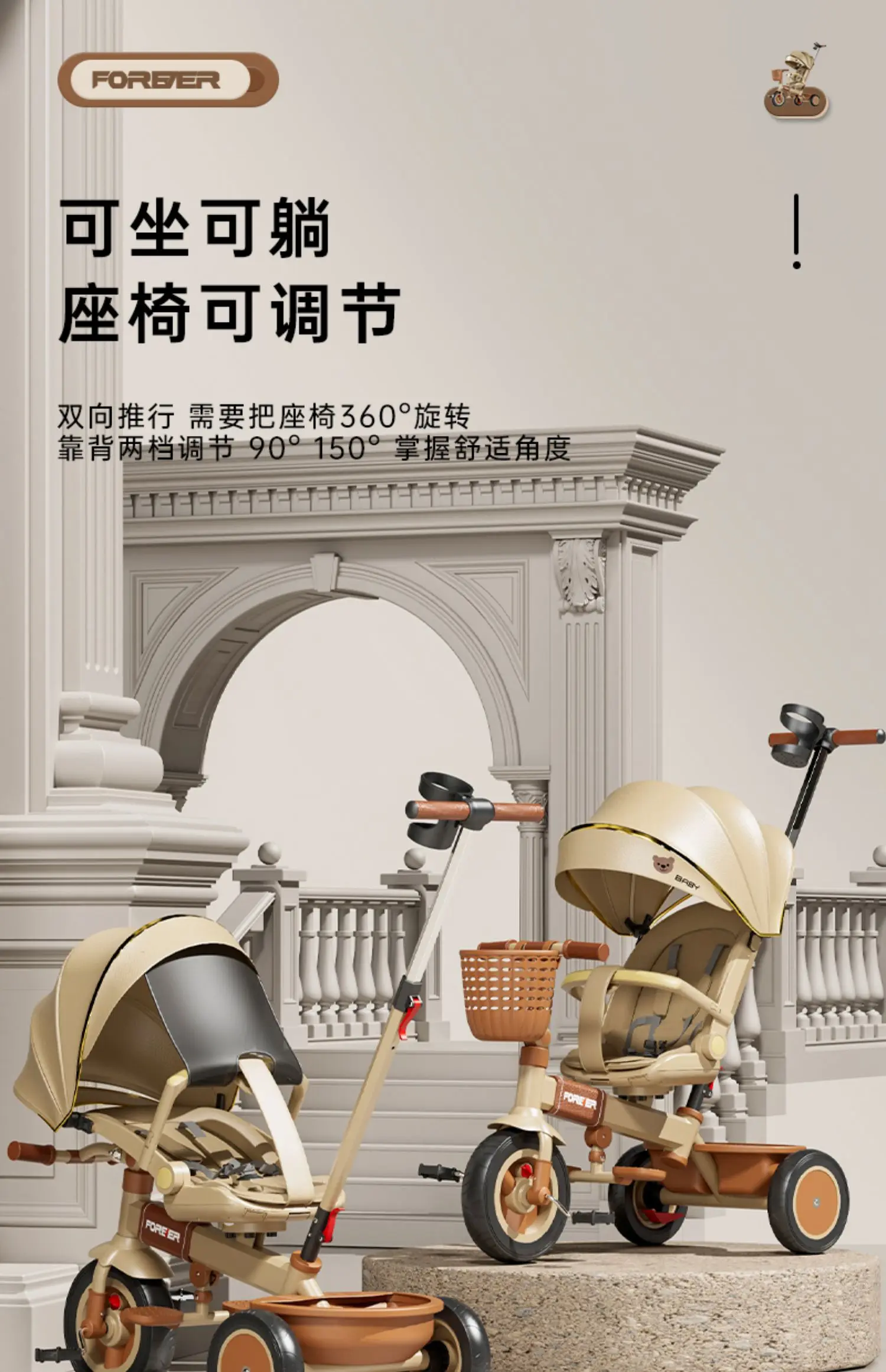 Triciclo convertible 3 en 1 para bebé, asiento reclinable con dosel y cesta de almacenamiento, estructura de acero para niños de 0 a 6 años