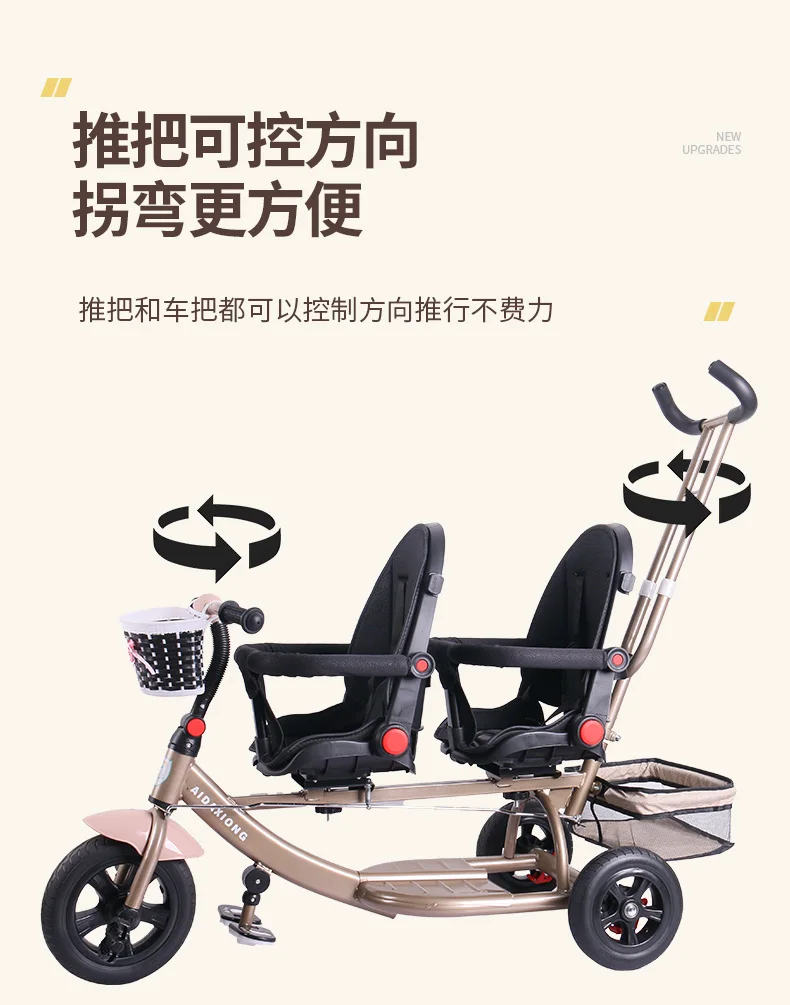 Comprar Triciclo doble 2 en 1 para niños con modo de cochecito desmontable, juguete plegable para montar 0-6, asientos delanteros y traseros ajustables, diseño multifunción