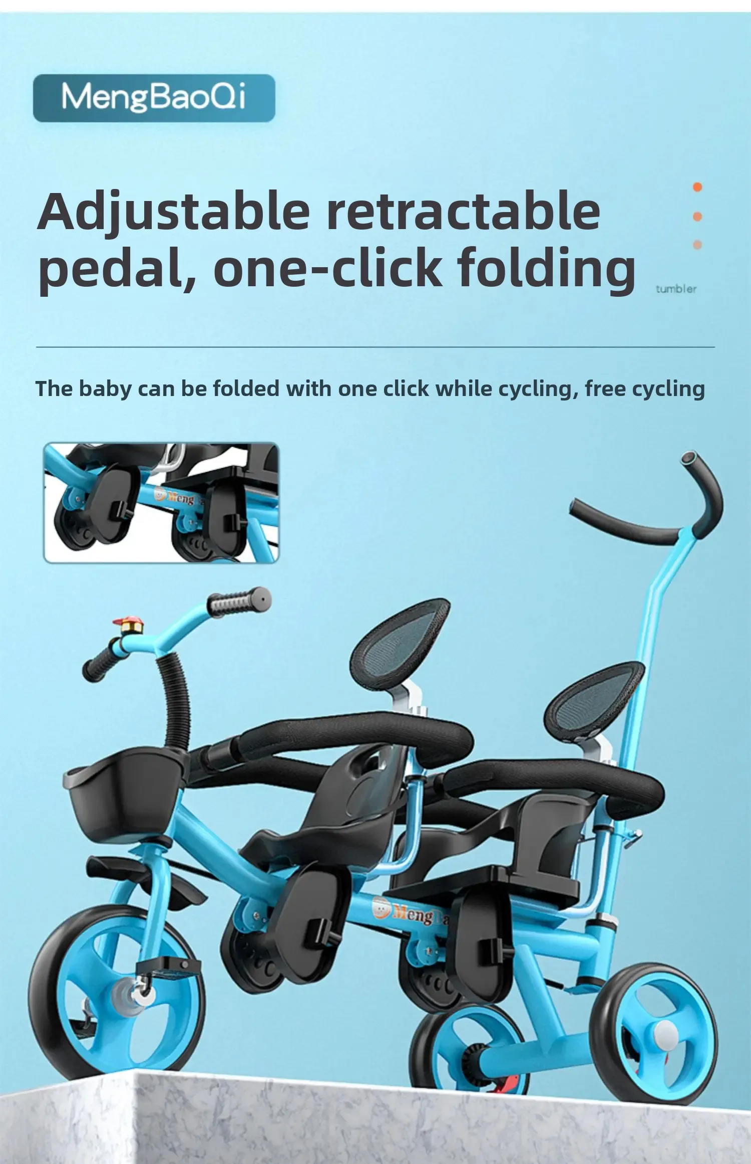 Título en inglés: triciclo gemelo para niños, asiento doble, bicicleta plegable con pedales para dos niños Características clave: Cómodos asientos para dos niños. Sistema de freno montado en la parte trasera para mayor seguridad. Ruedas antideslizantes para mayor seguridad. Uso multifuncional, perfecto para gemelos o hermanos. Estable y seguro para uso infantil. Palabras clave SEO: triciclo gemelo para niños, triciclo de doble asiento, bicicleta para bebés plegable, bicicleta de doble pedal, triciclo gemelo para bebés, bicicleta multifuncional para niños, bicicleta antideslizante para niños