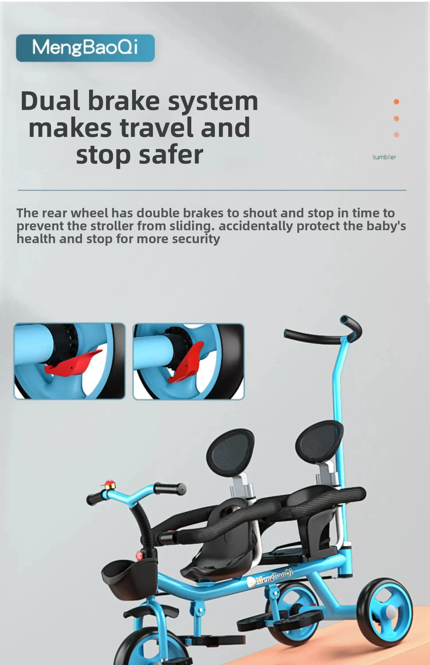 Triciclo doble para niños con barandilla de seguridad, asiento desmontable con freno trasero antideslizante, portabebés doble plegable para viajes en centros comerciales al aire libre