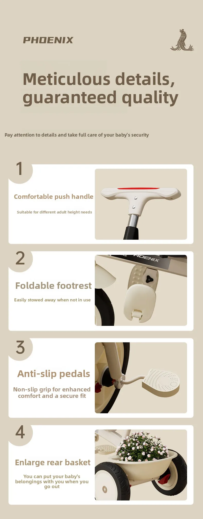 Triciclo de empuje para bebé con Pedal para niños de 1 a 6 años, bicicleta grande para niños, cochecito, bicicleta