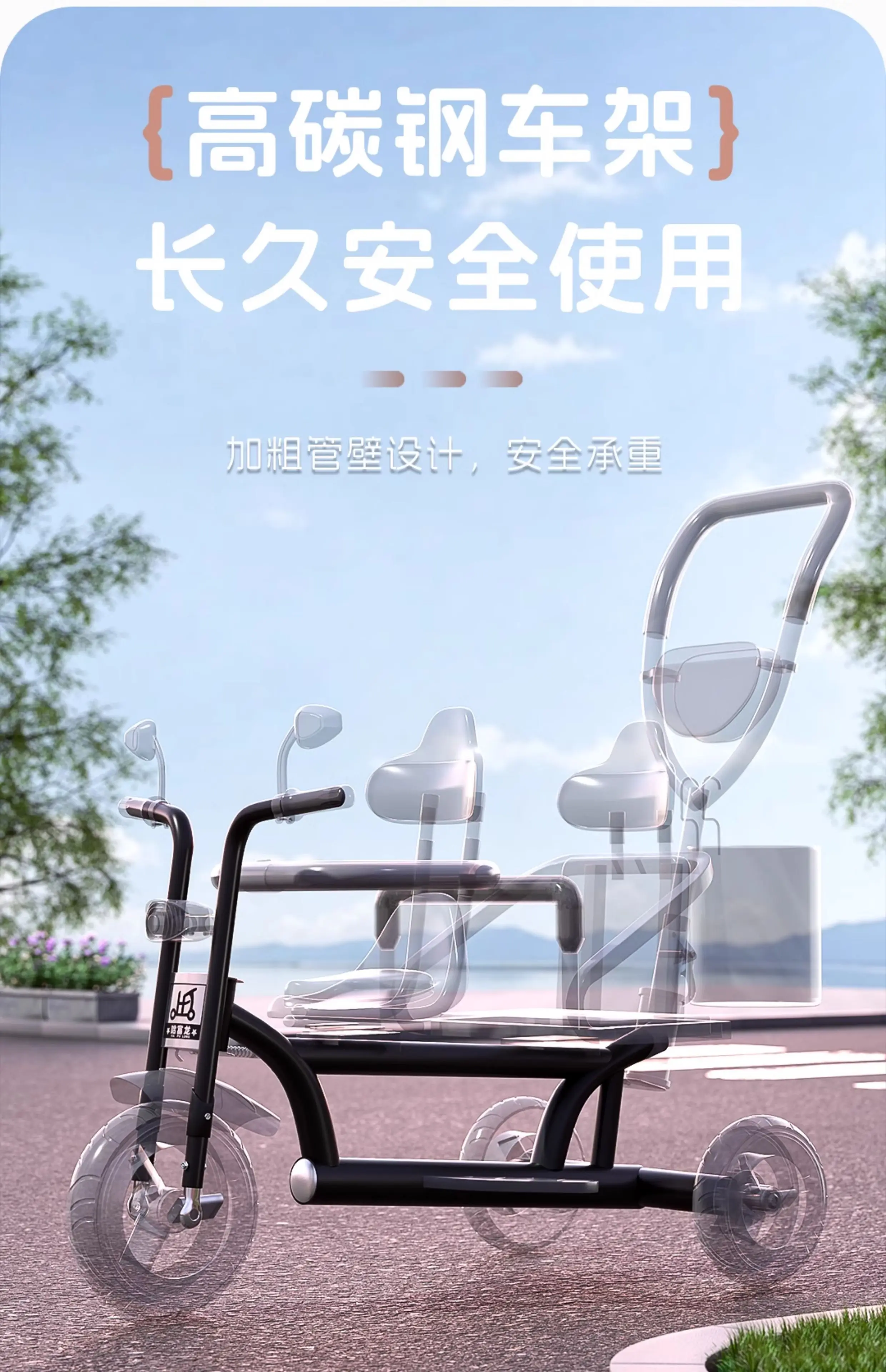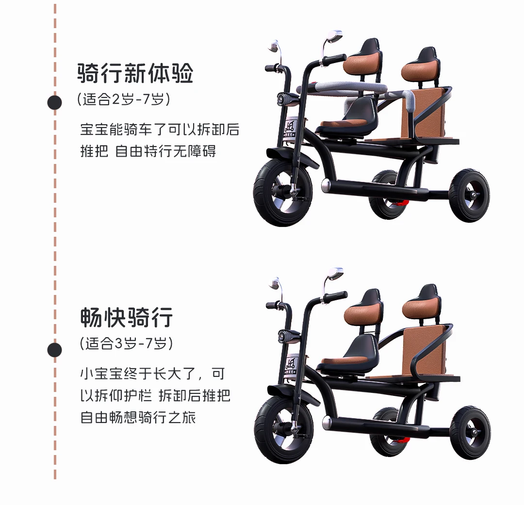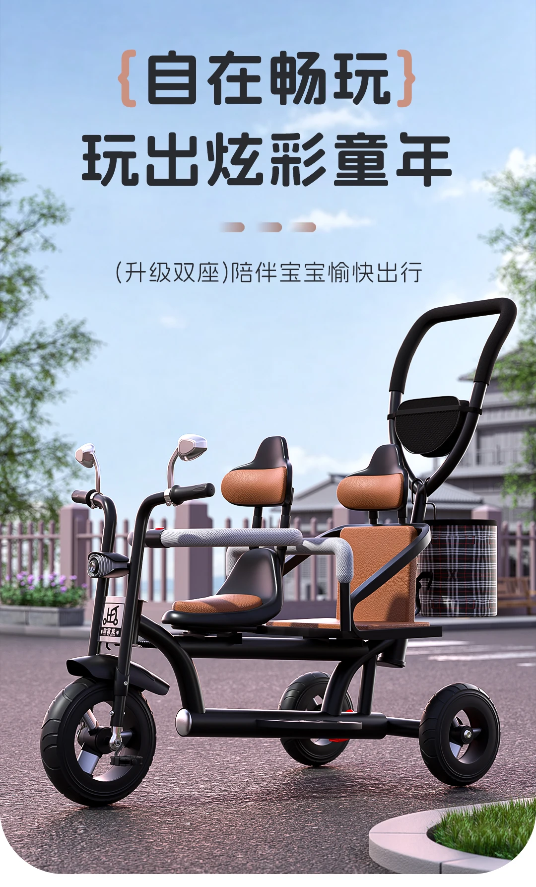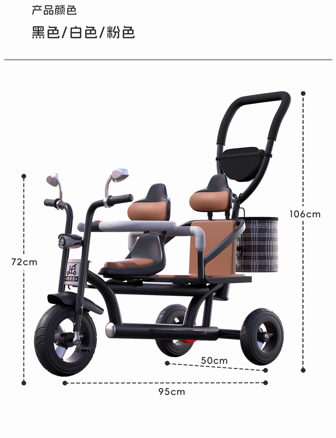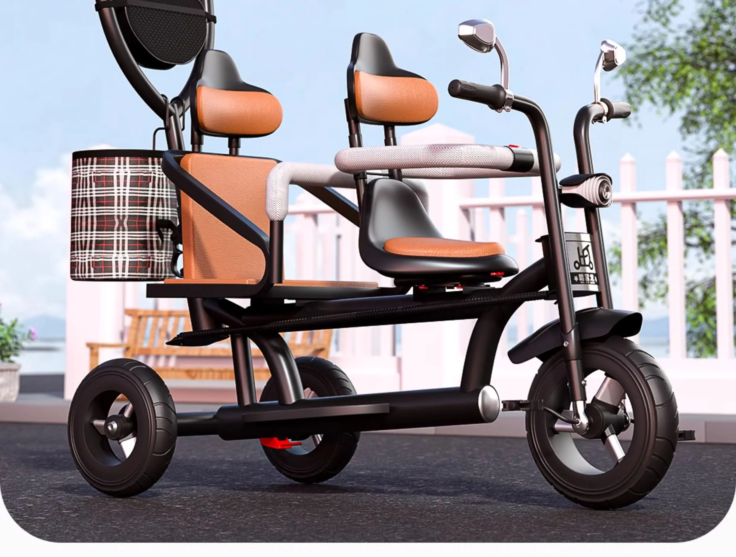 Triciclo para niños, bicicleta doble para bebé, carrito de mano doble, cochecito ligero para bebé