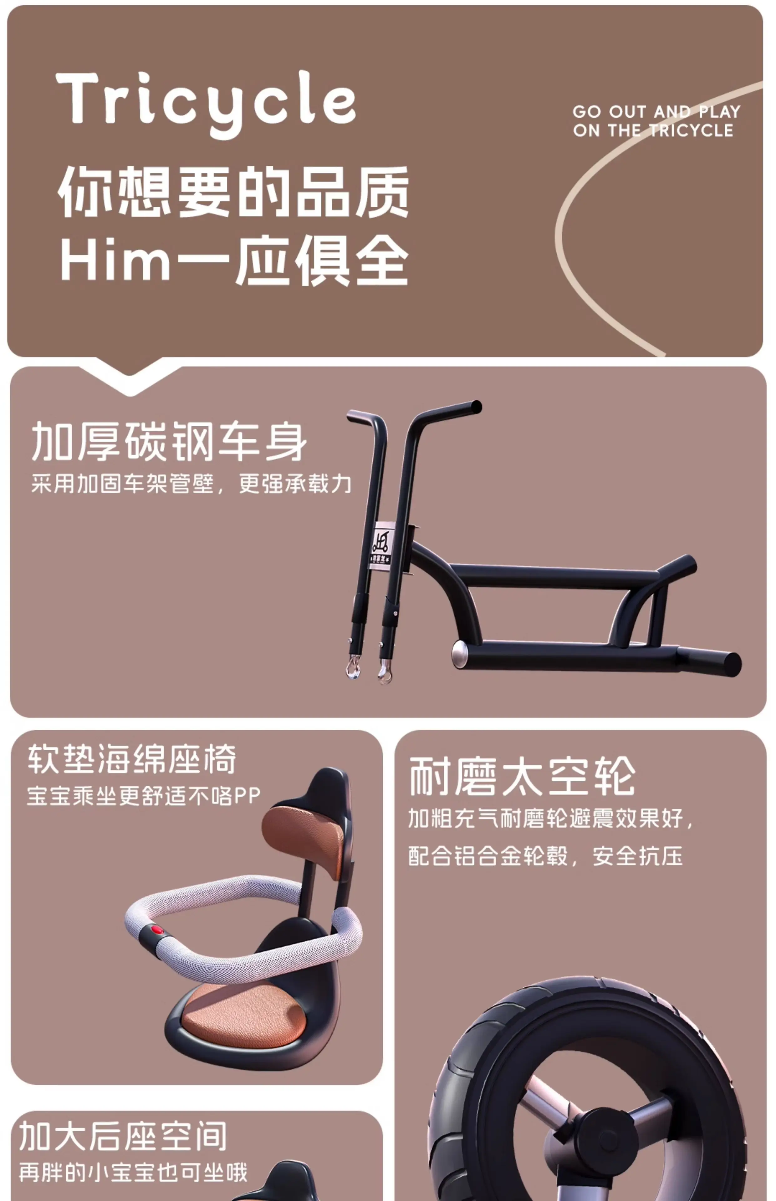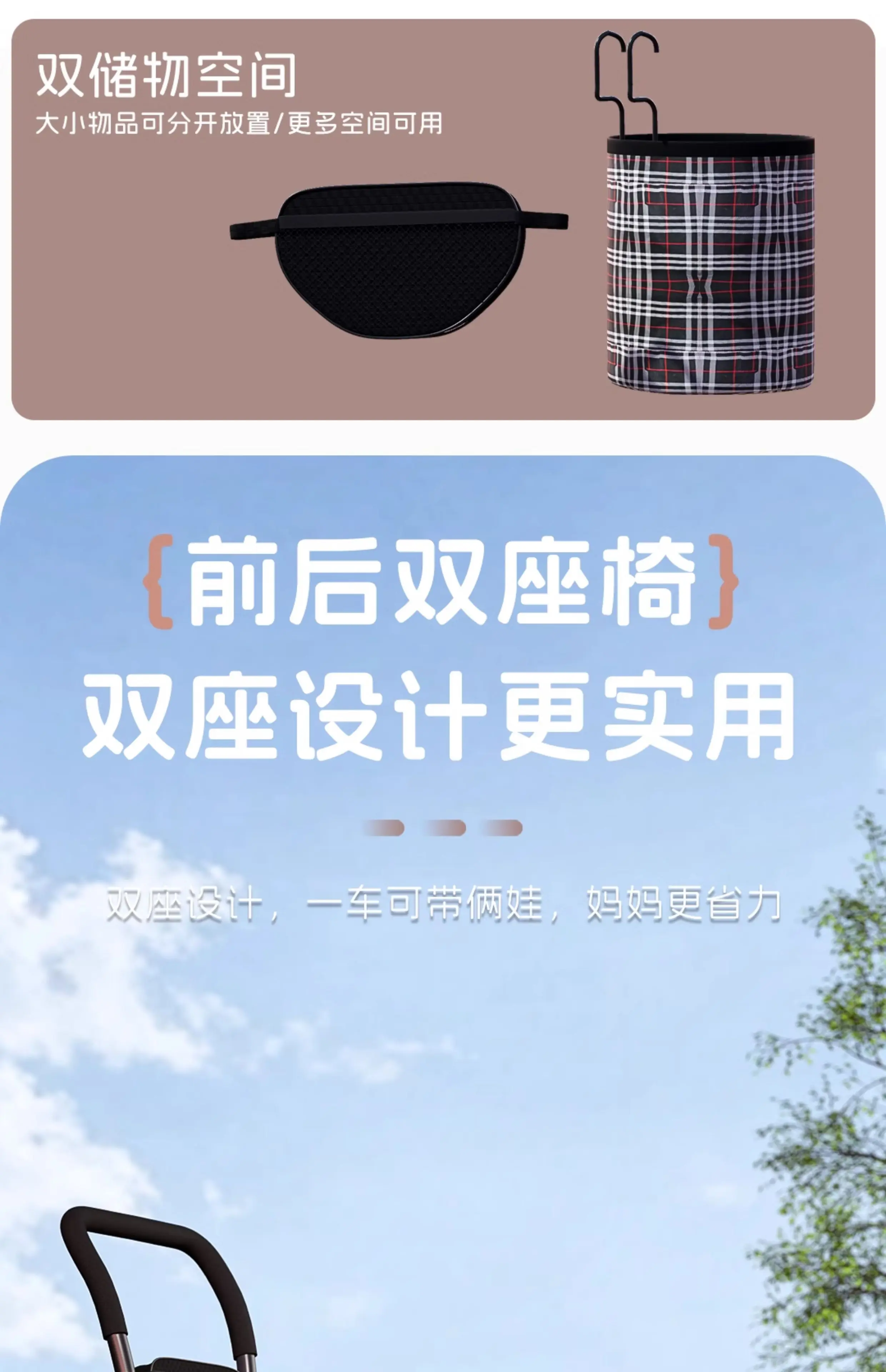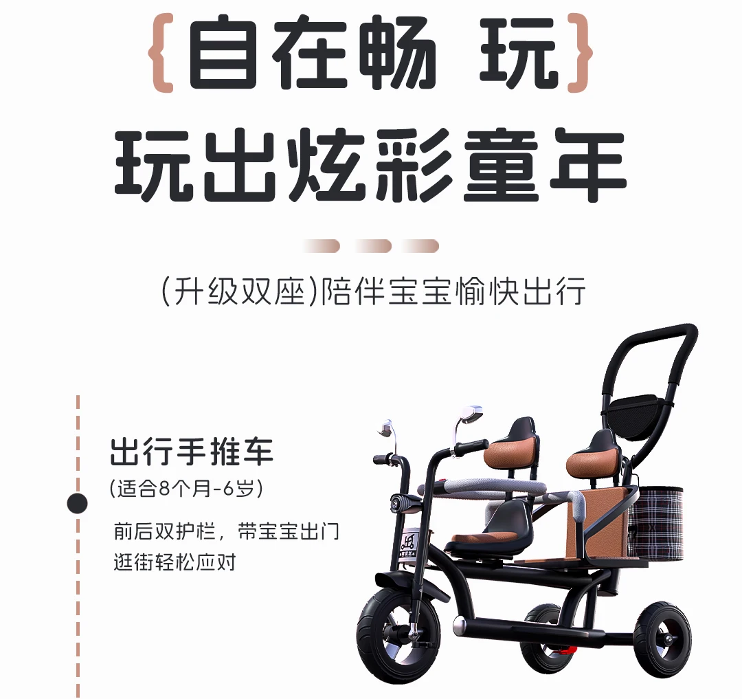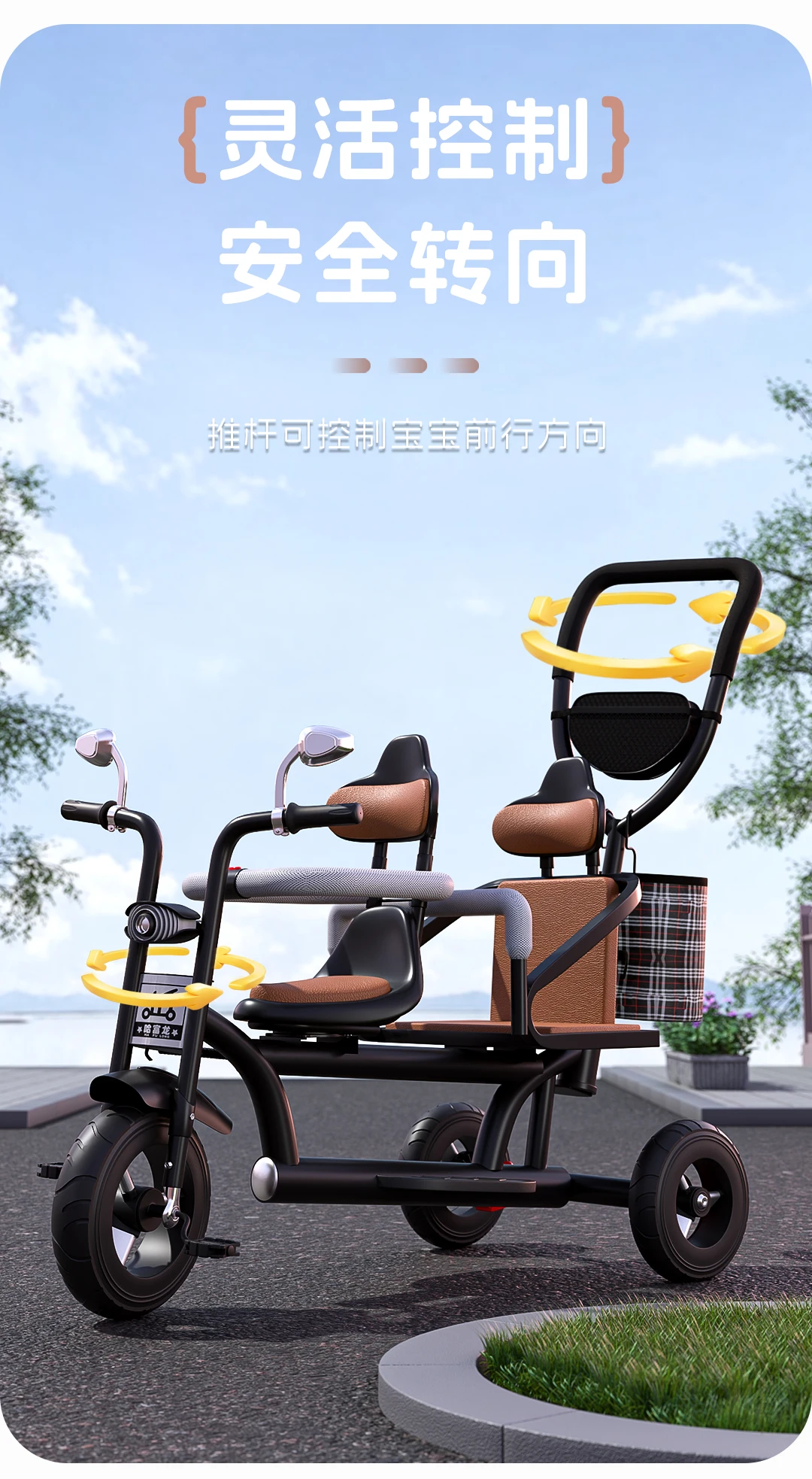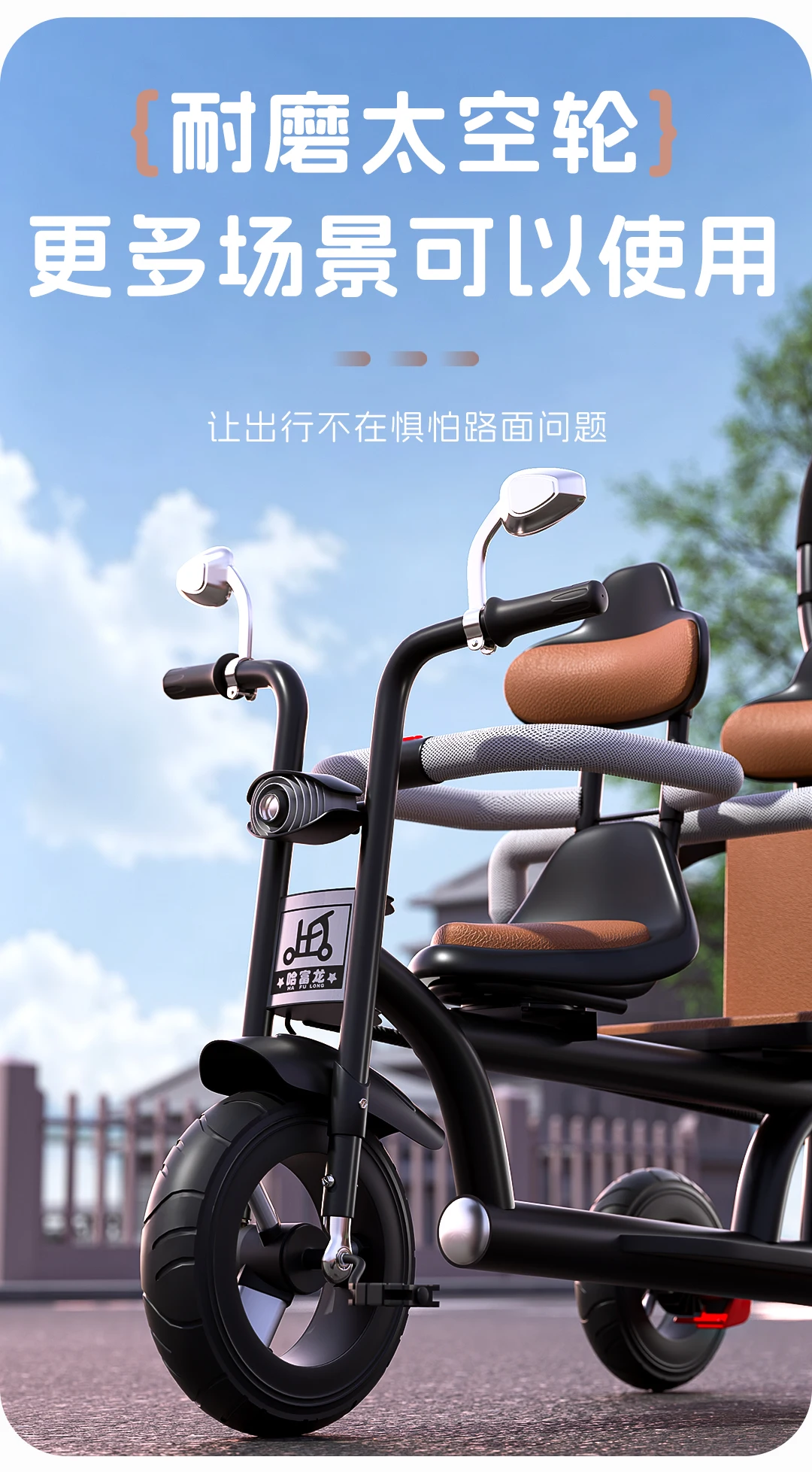 Triciclo para niños, bicicleta doble para bebé, carrito de mano doble, cochecito ligero para bebé