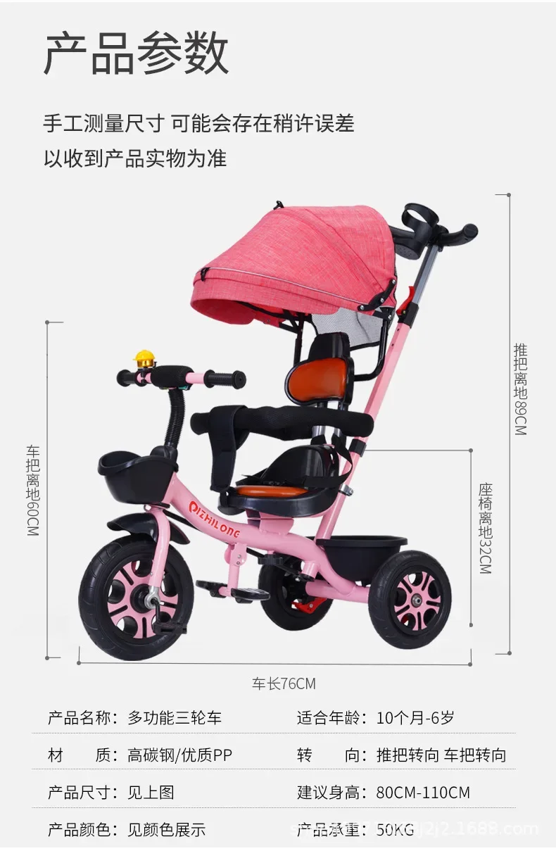 Comprar Triciclo para niños, carrito de mano, bicicleta para bebés de 6 a 5 años, cochecito ligero de gran tamaño para exteriores, bicicleta para bebés