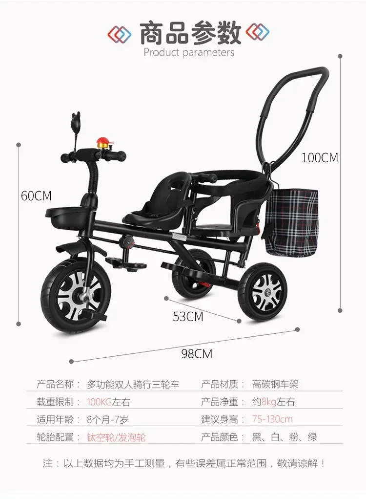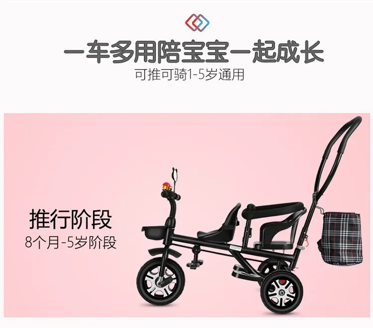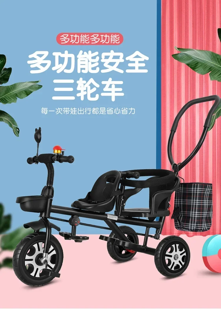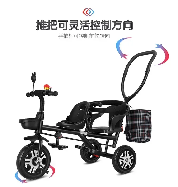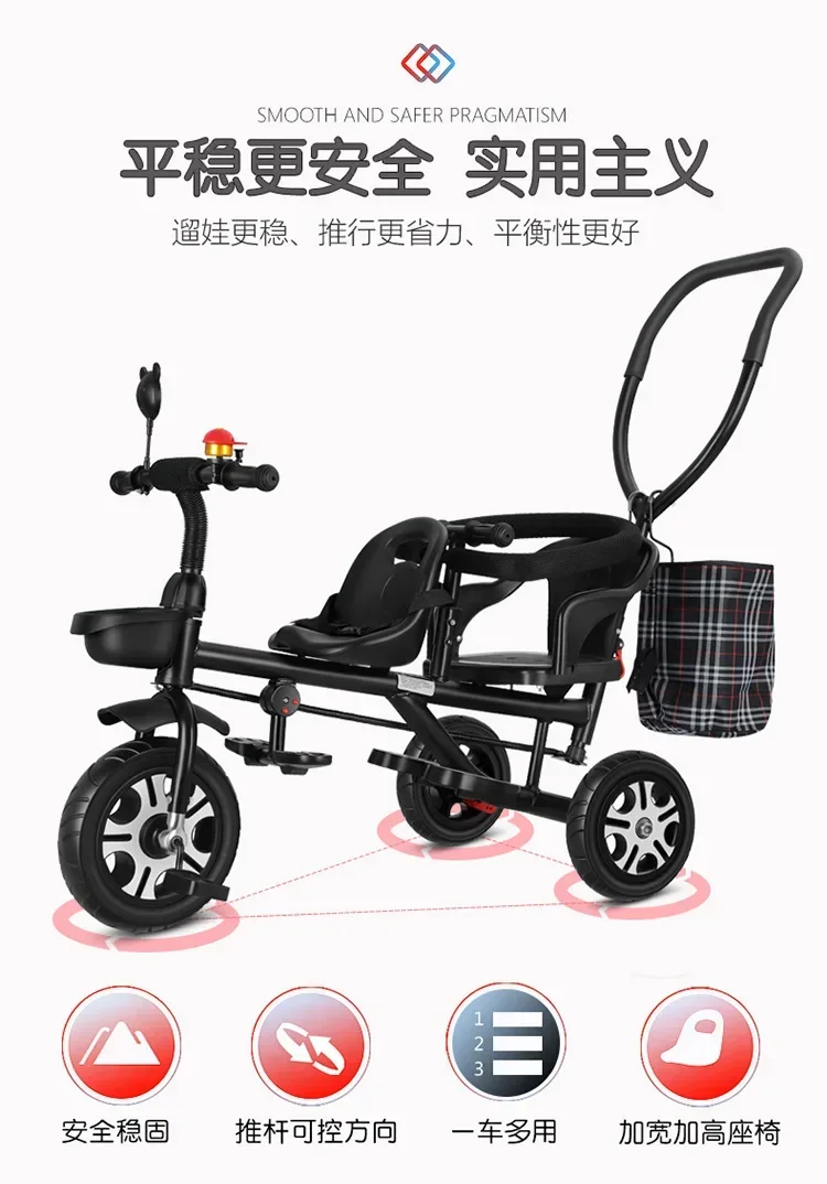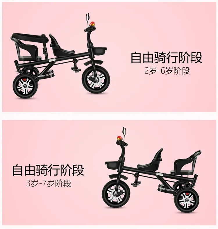 Triciclo para niños, carrito de mano doble, bicicleta para dos personas, cochecito ligero para bebé, cochecito de bebé