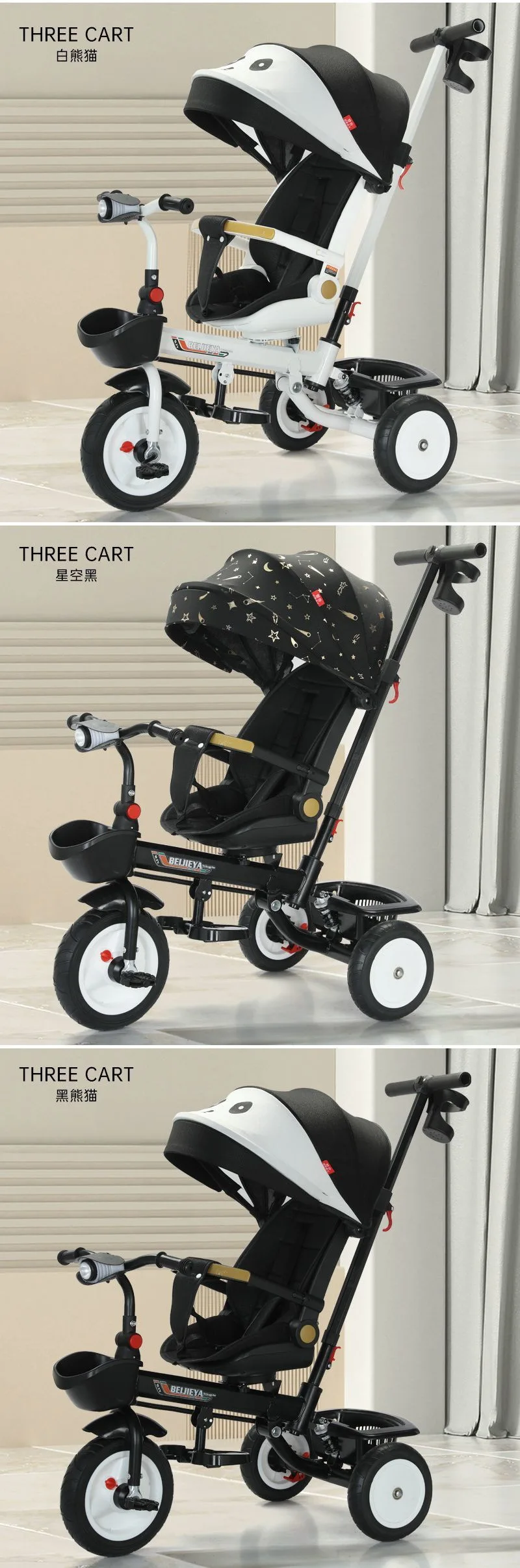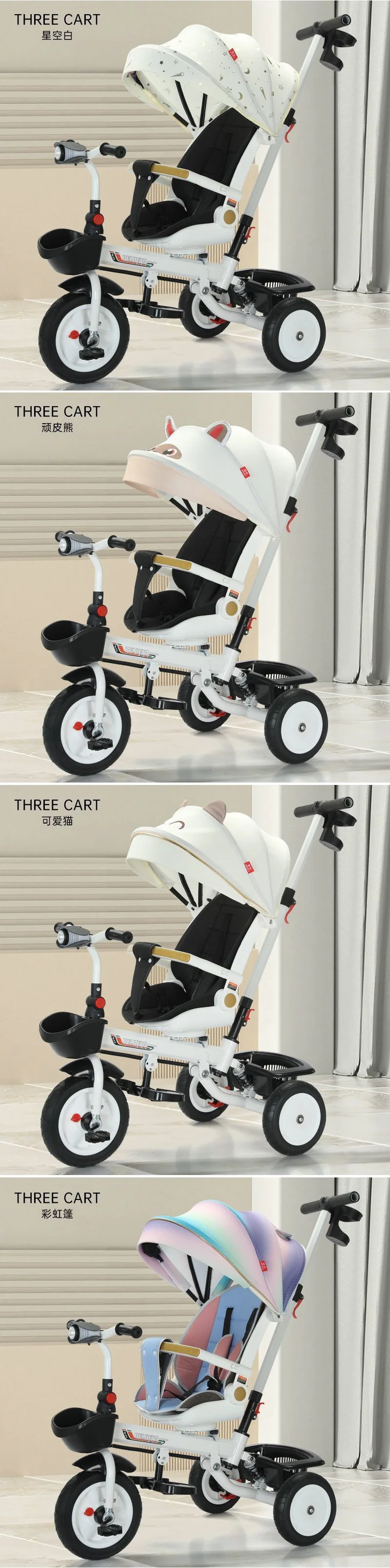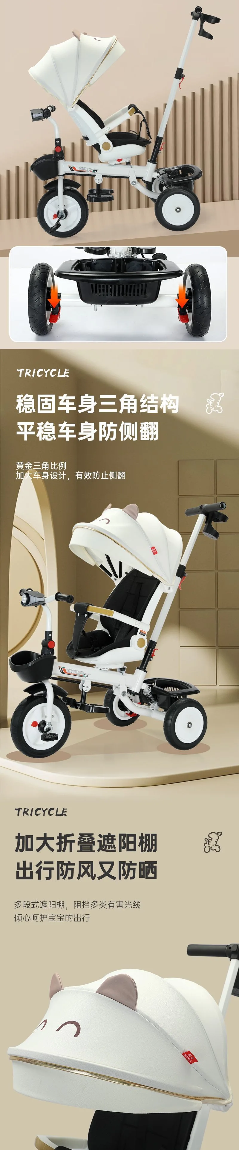 Triciclo para niños que puede sentarse, tumbarse, cochecito multifunción plegable