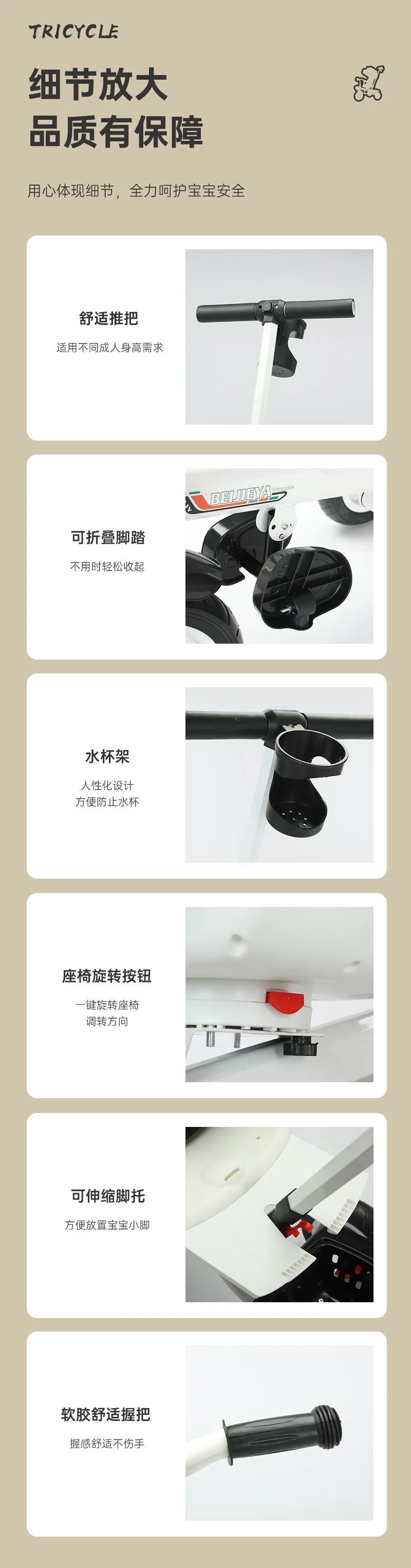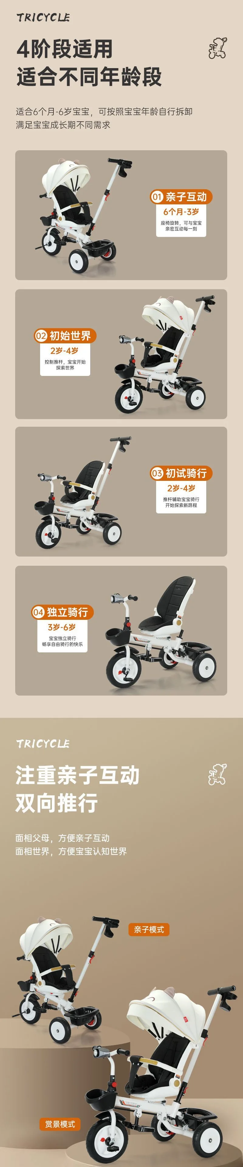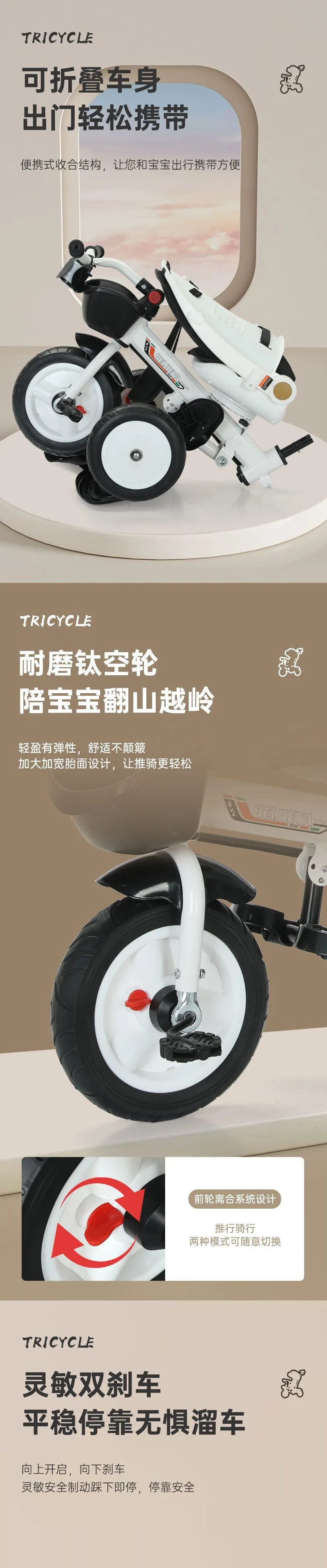 Triciclo para niños que puede sentarse, tumbarse, cochecito multifunción plegable