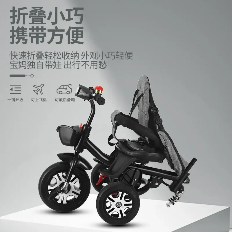 Comprar Triciclo plegable con amortiguación para niños, bicicleta de bebé, cochecito reclinable multifuncional para niños de 1 a 3 a 7 años