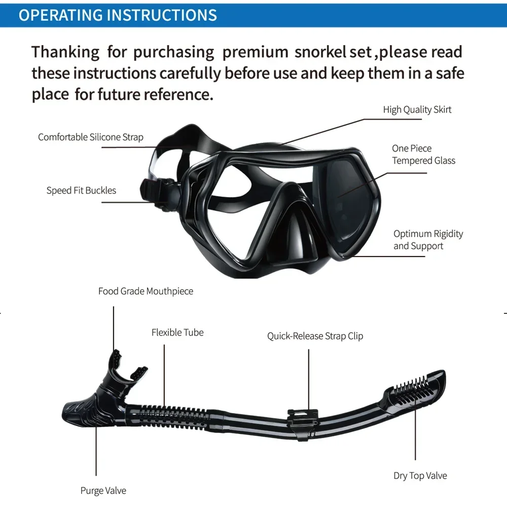 Manguera de tubo de respiración para buceo Equipo profesional de snorkel submarino seco
