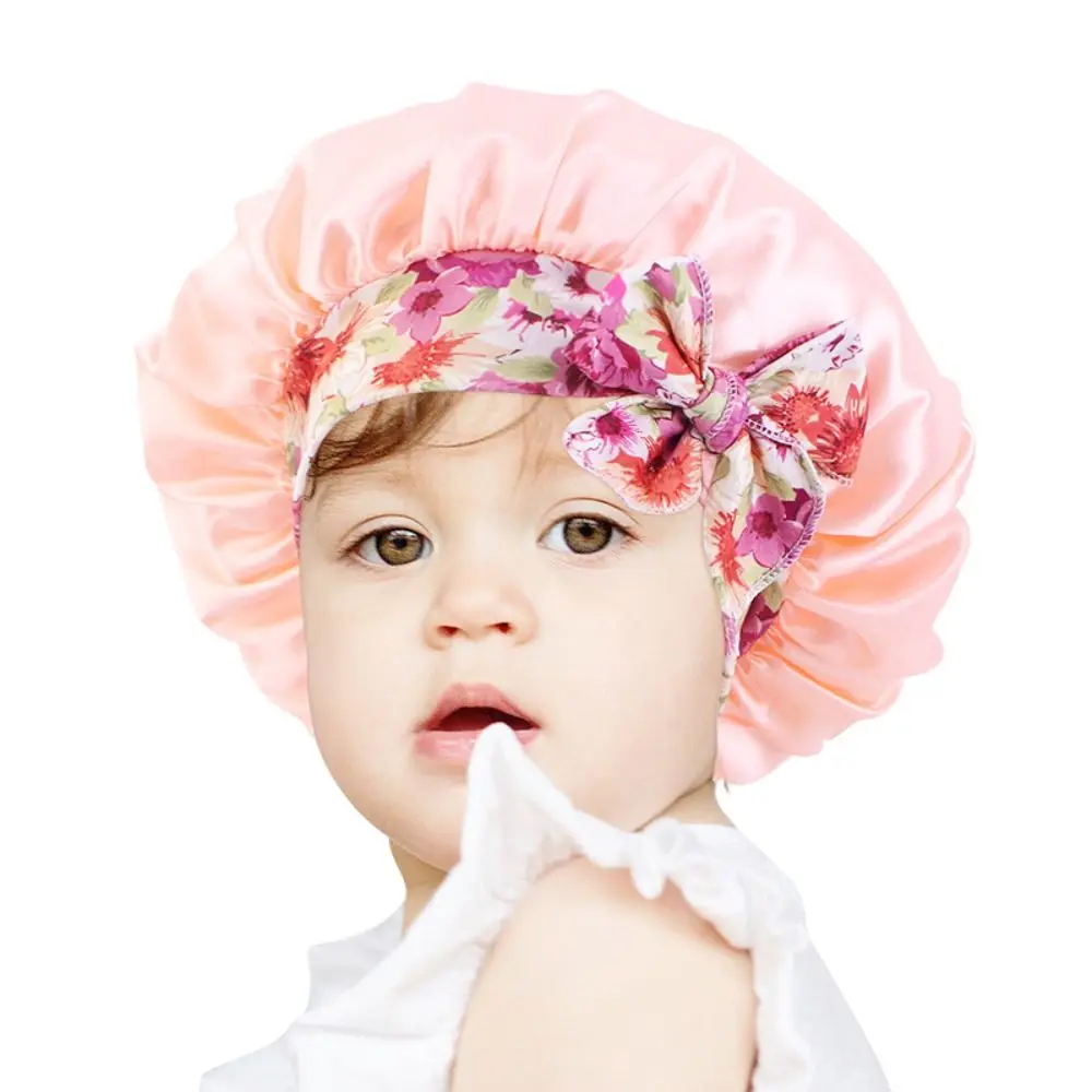 Comprar Turbante de noche elegante para niños, gorro de baño para niña, gorro de maquillaje de satén sedoso, gorro de dormir para bebé, gorros de dormir de noche con lazo