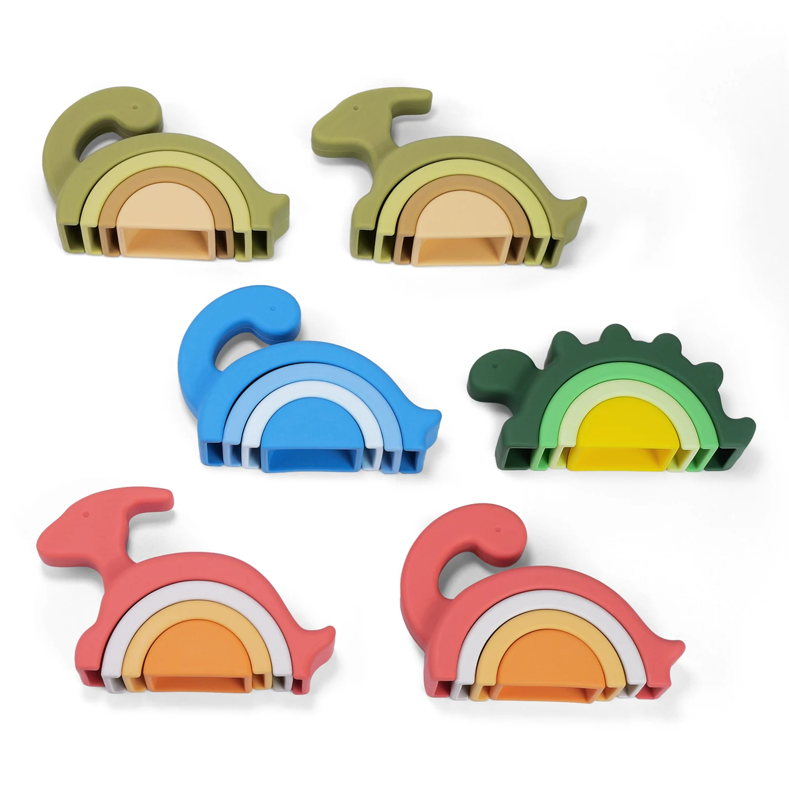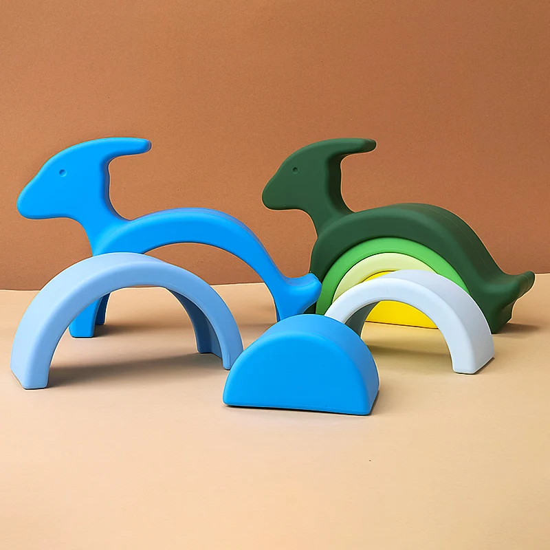 TYRY.HU 1 BPA juguete de bloque de apilamiento de dinosaurio de silicona libre, juguete a juego de forma creativa, juguete de bloque suave, juguete de bloque de bebé