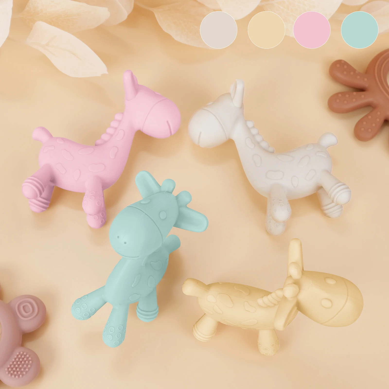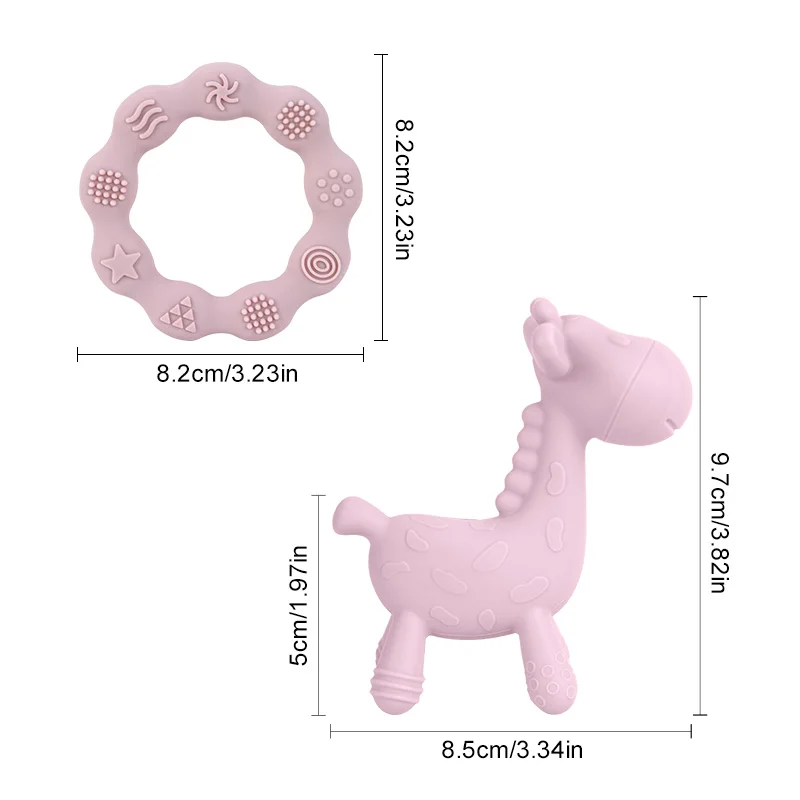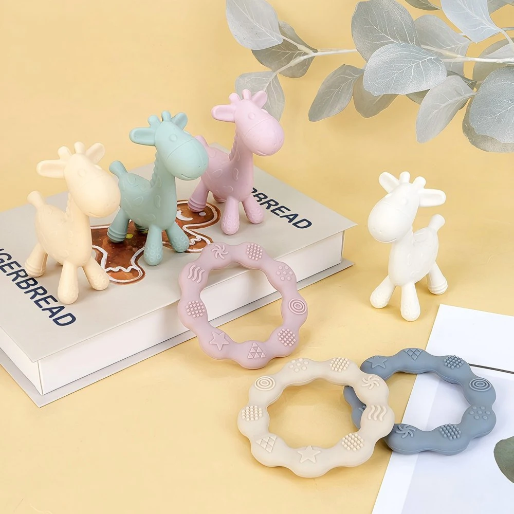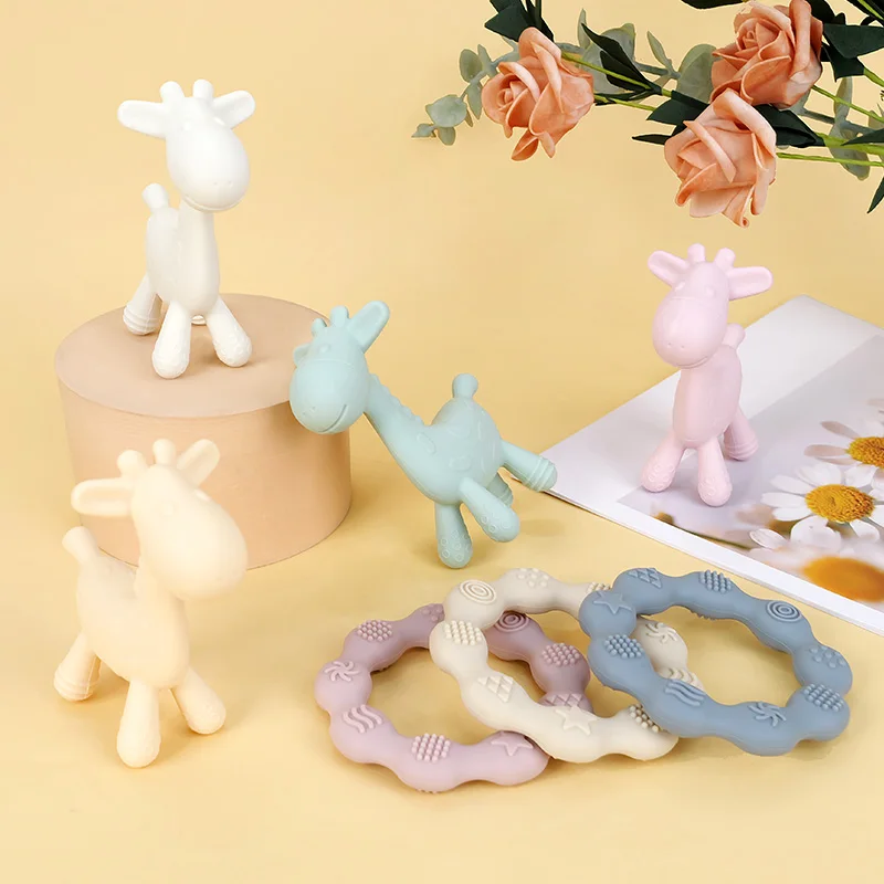 TYRY.HU, 2 uds., anillo mordedor de silicona para bebés y juguete para masticar con forma de jirafa, juguete para la dentición para recién nacidos, regalos para mordedores para niños