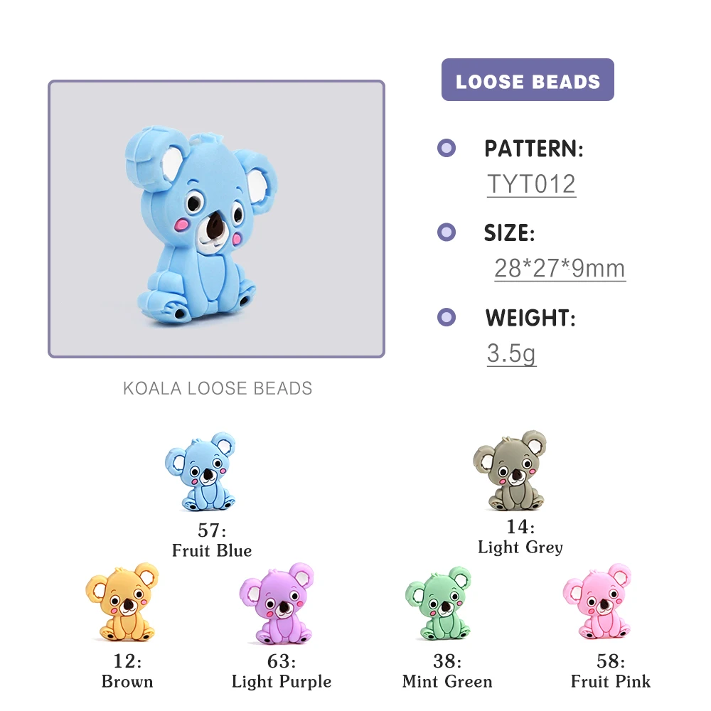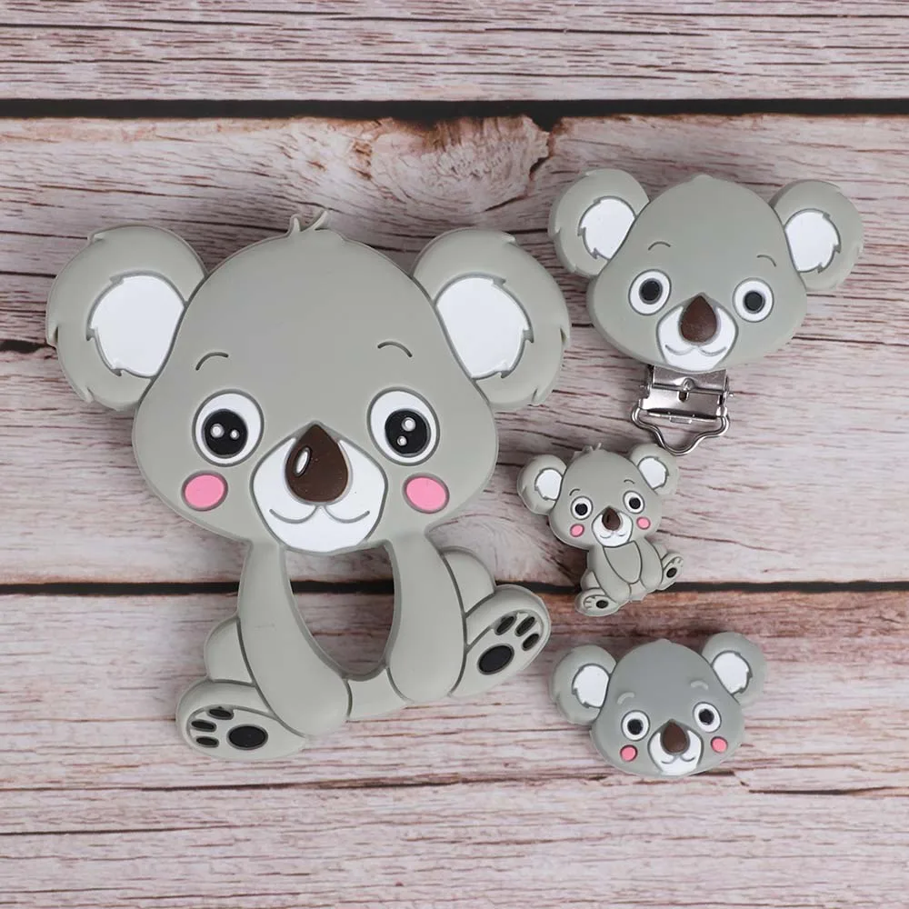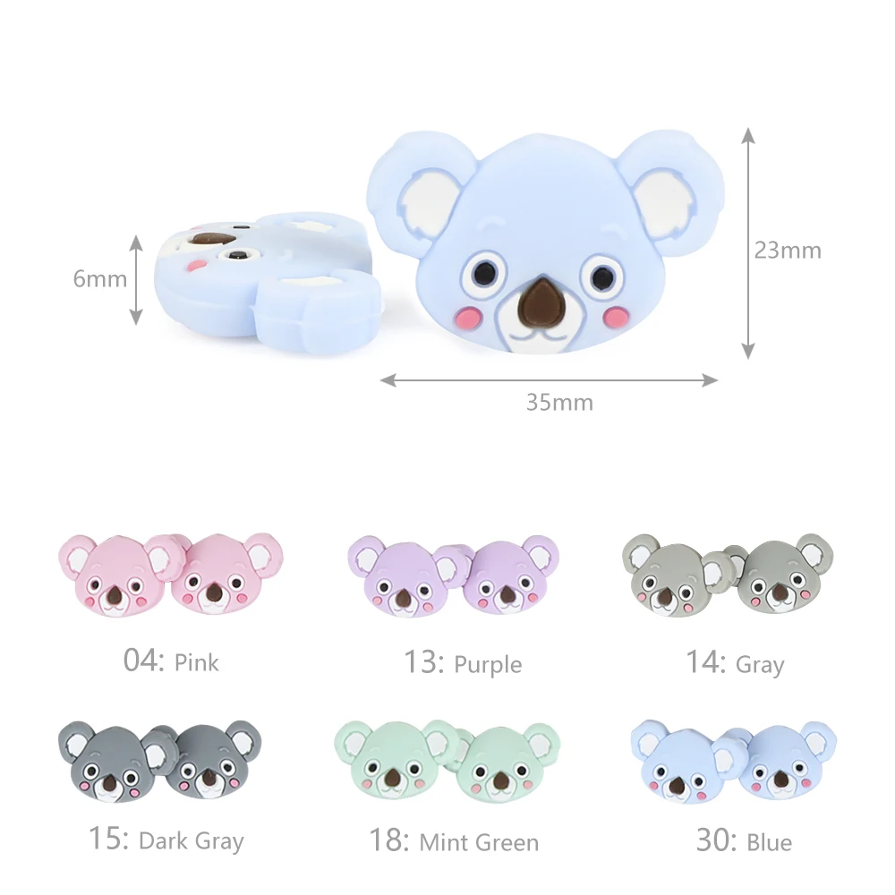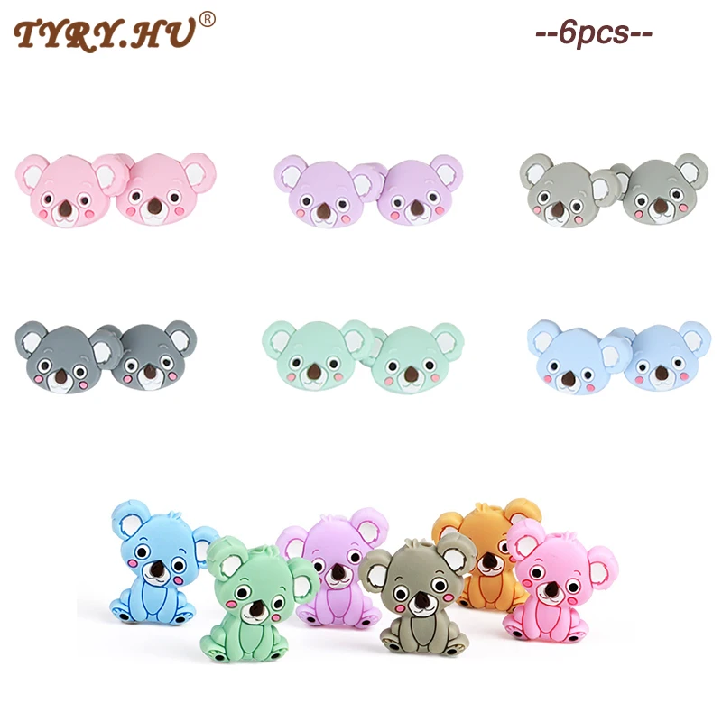 Comprar TYRY.HU, 6 uds., cuentas de Koala, Clips para chupete de cartón, cuentas de silicona de calidad alimentaria, varilla pequeña, Mini mordedor para bebé