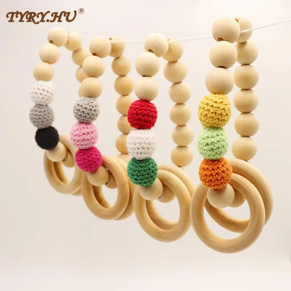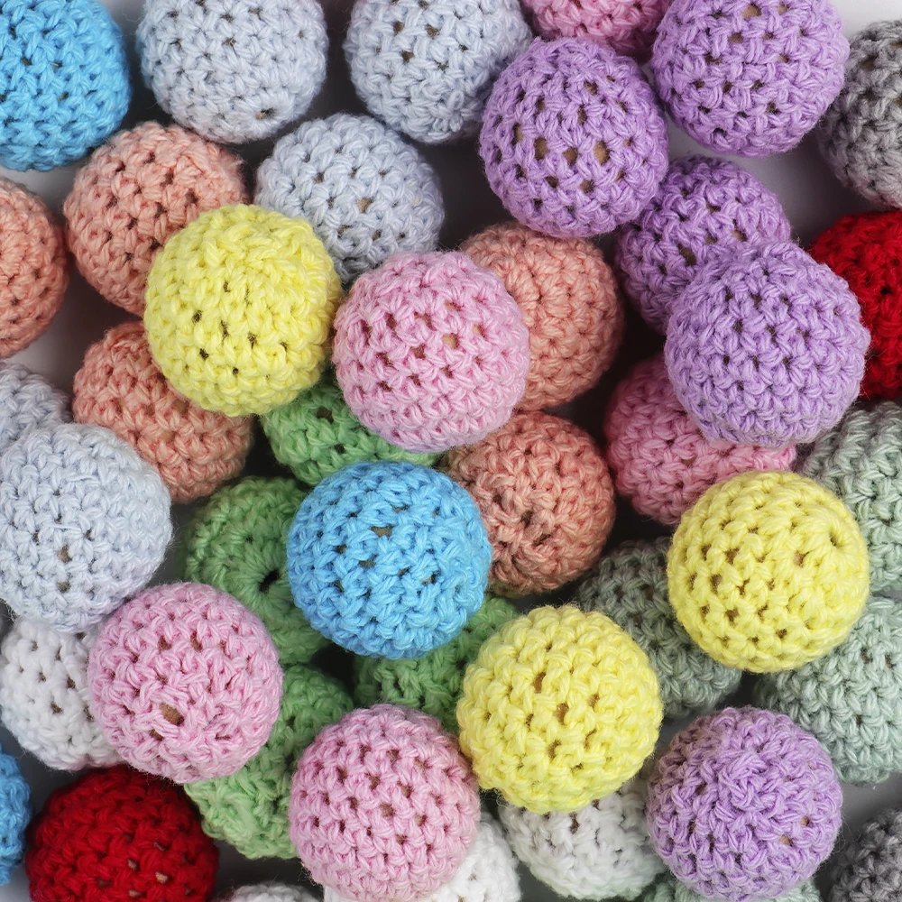 Comprar TYRY.HU-Cuentas de madera redondas de ganchillo, bolas hechas a mano para masticar, cadenas de chupete DIY, cuentas de pulsera de dentición, 16/20mm, 50 unidades por lote