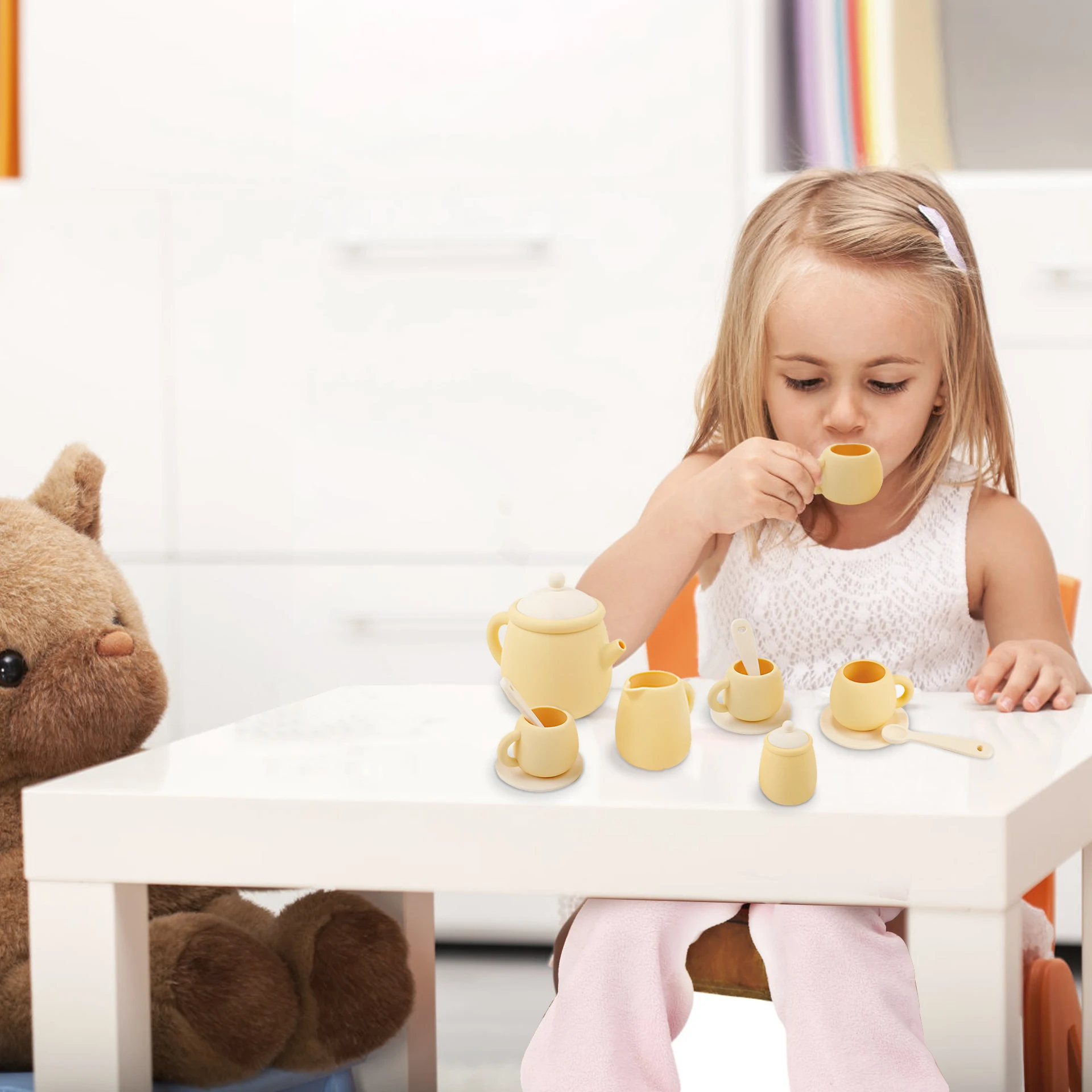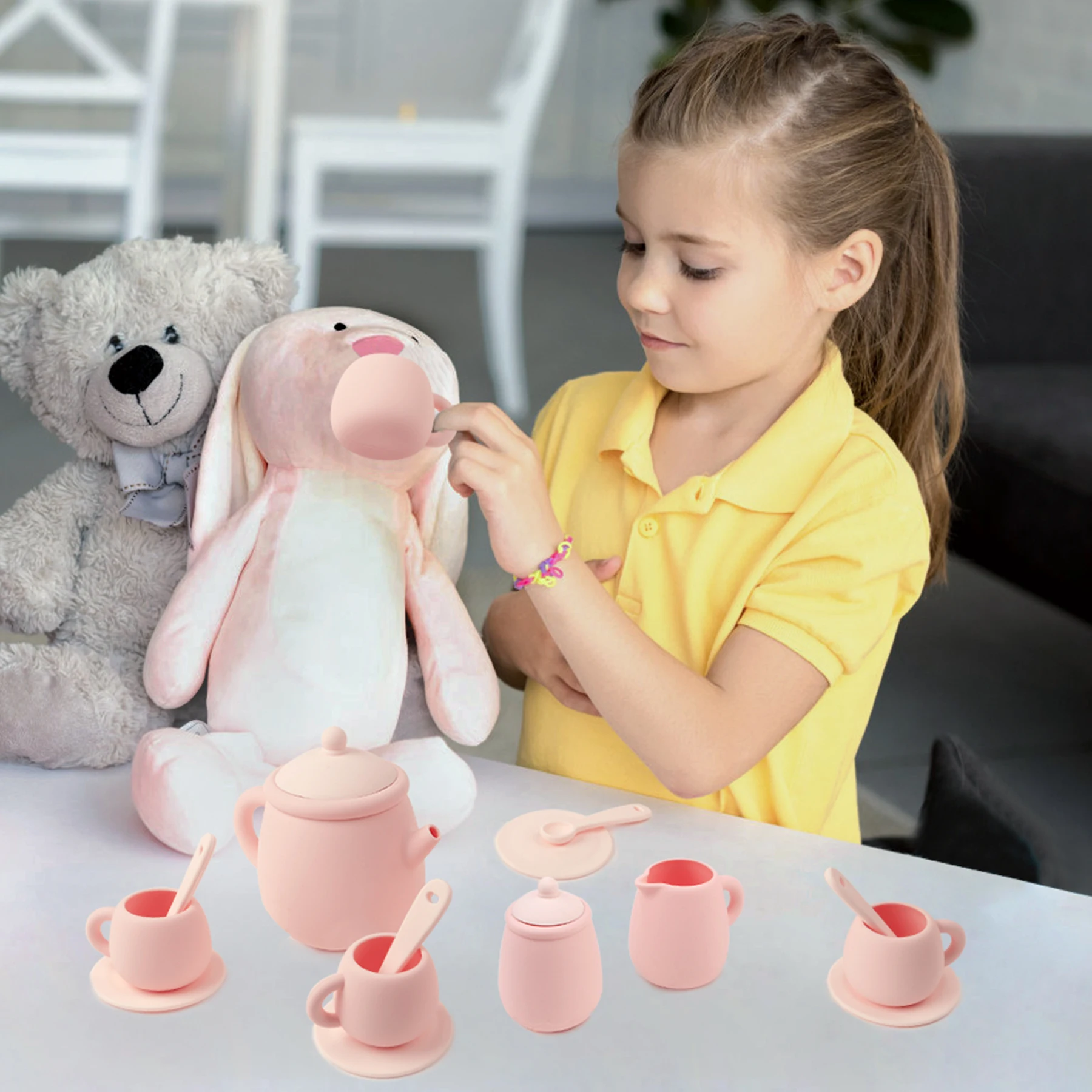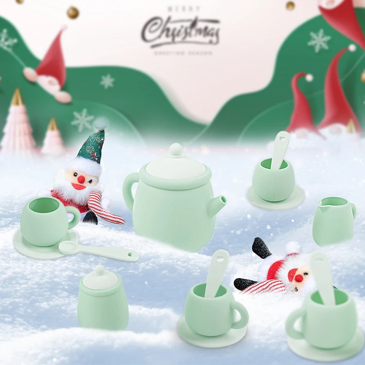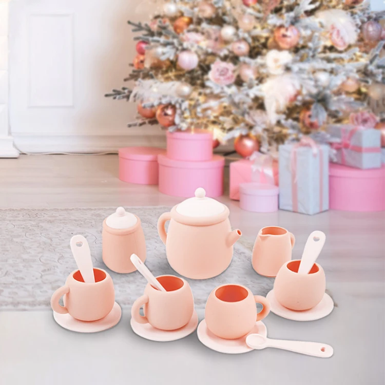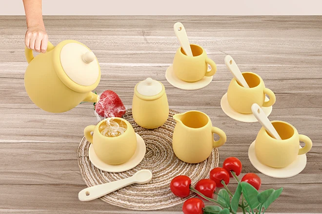 TYRY.HU 7 PCS/Set de juguetes de silicona para niños pequeños, juego de té para niñas y niños 100%, comida de silicona, juego de té sin BPA para niños, hora del té