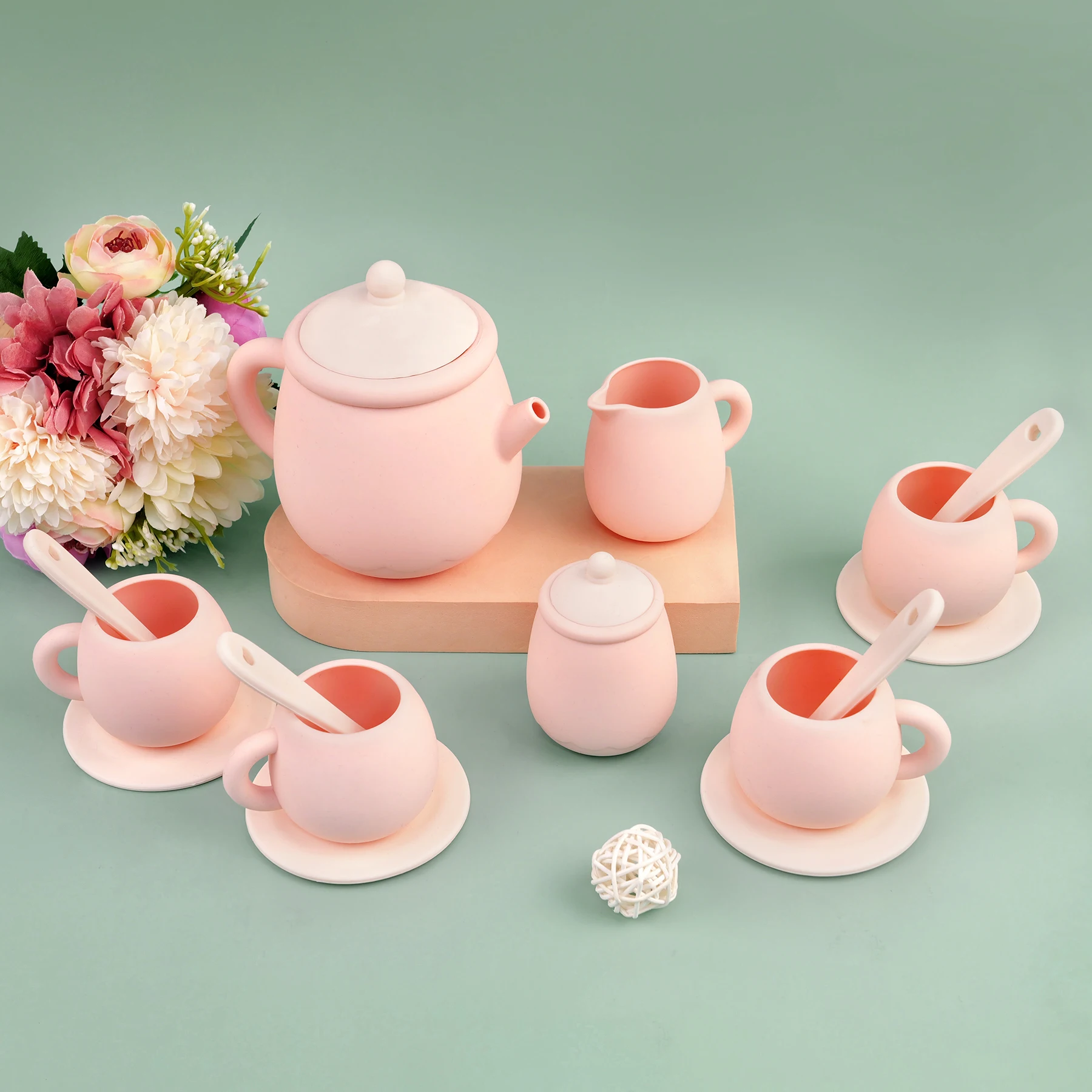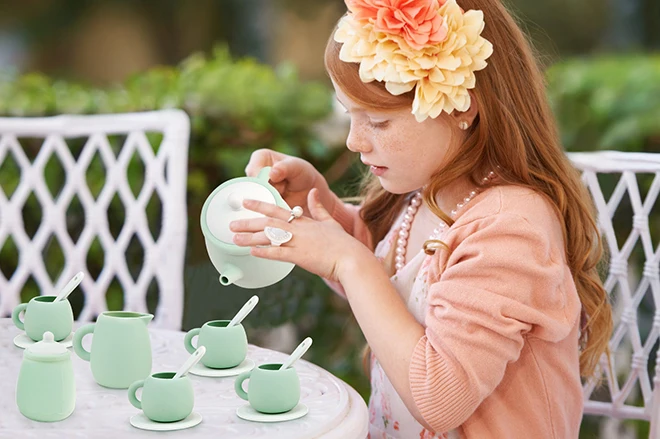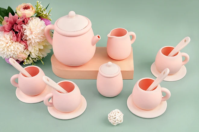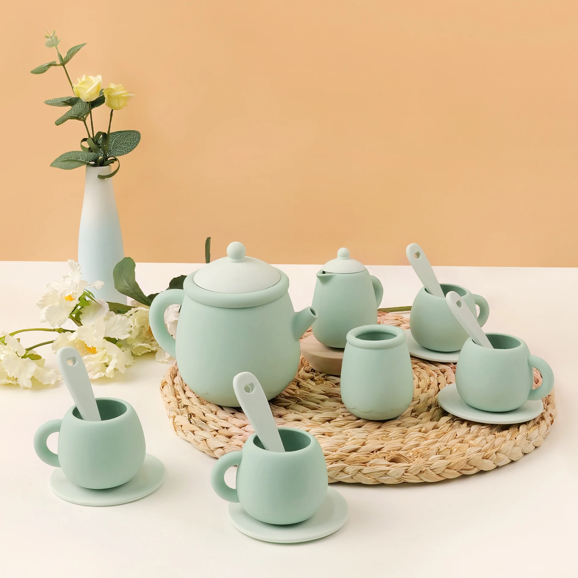 TYRY.HU 7 PCS/Set de juguetes de silicona para niños pequeños, juego de té para niñas y niños 100%, comida de silicona, juego de té sin BPA para niños, hora del té