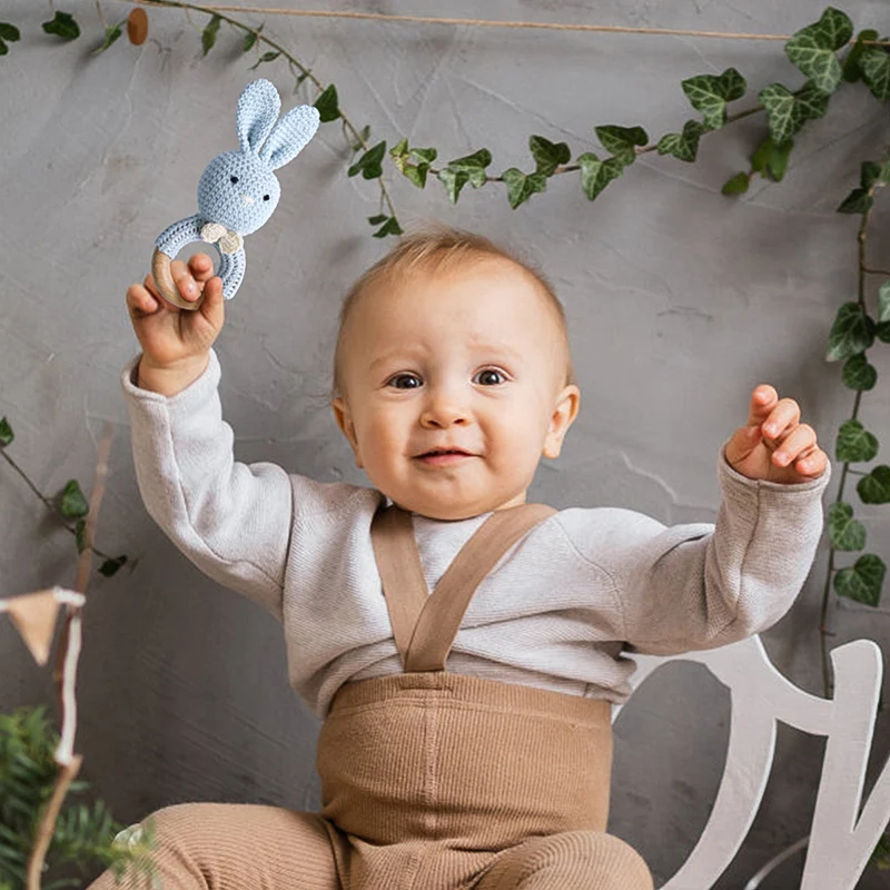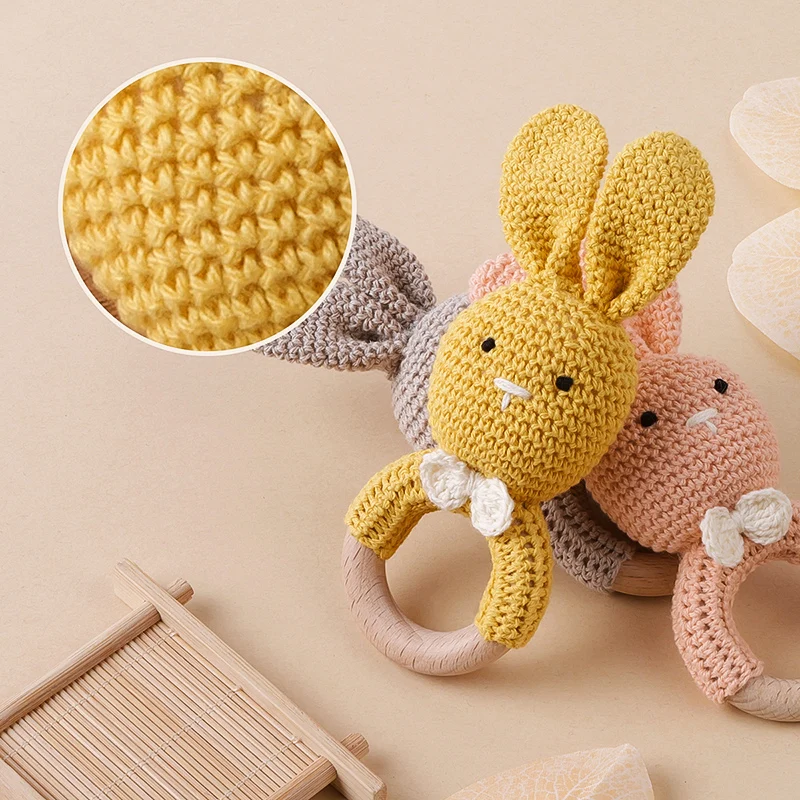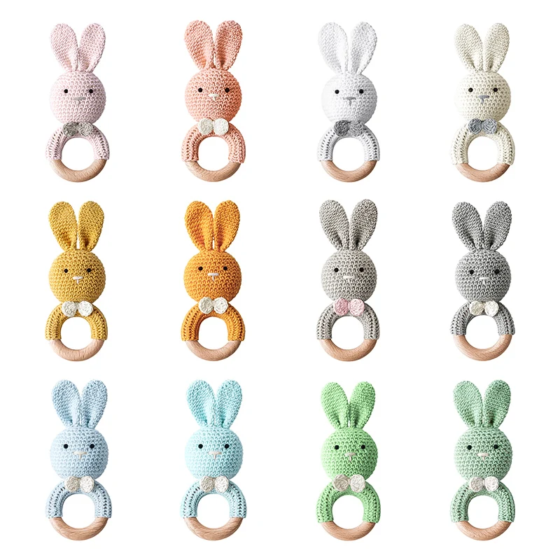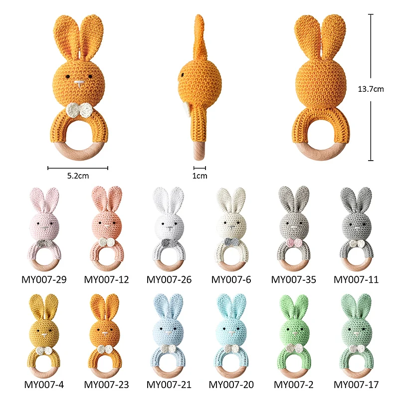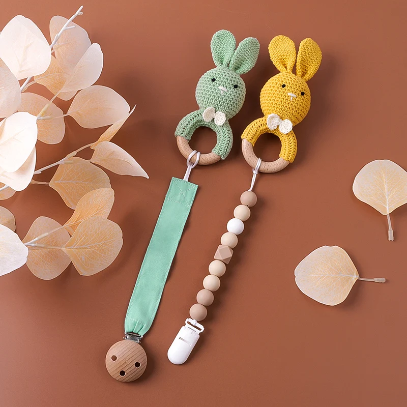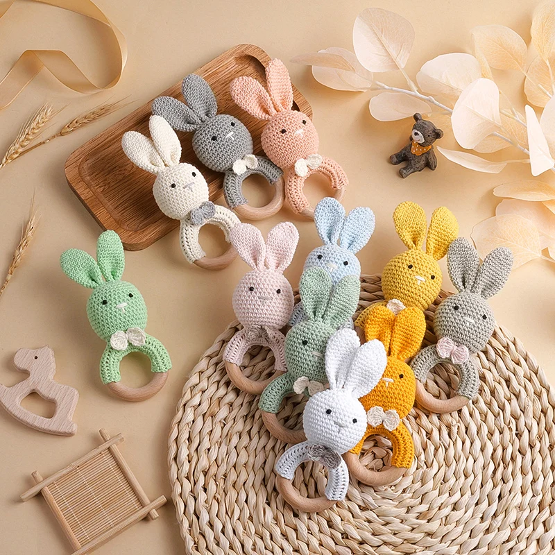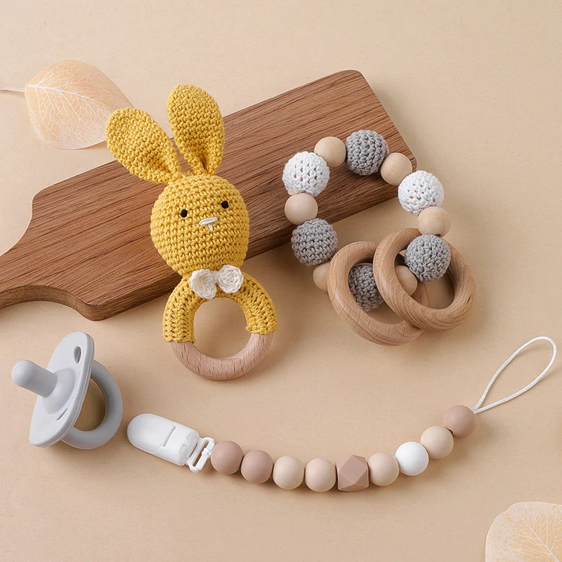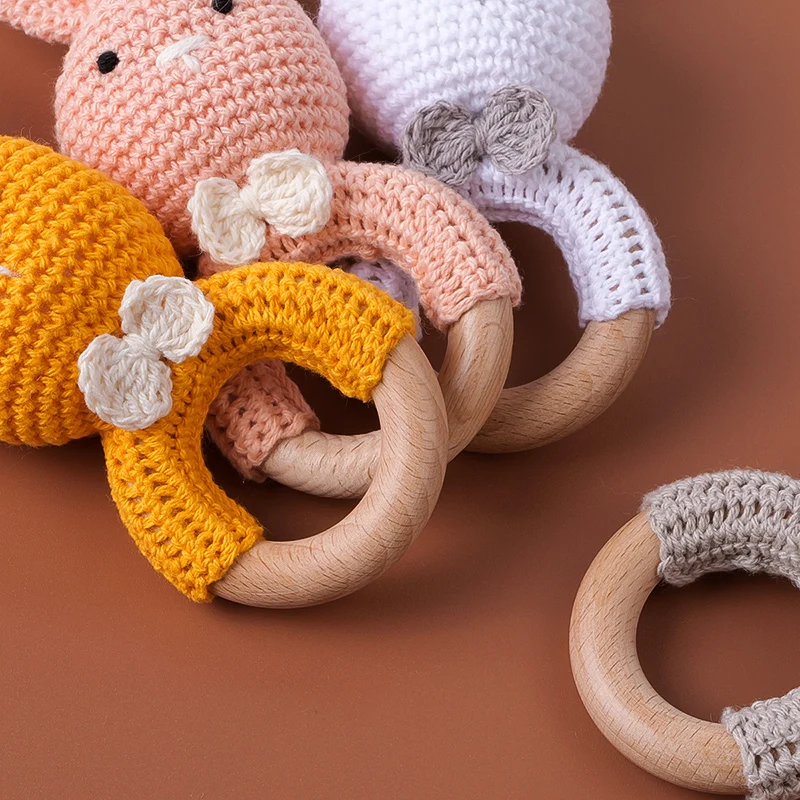 TYRY.HU-Mordedor para bebé, juguetes de madera seguros, anillo móvil para cuna, sonajero de ganchillo, pulsera para chupete, sin BPA, 1 unidad