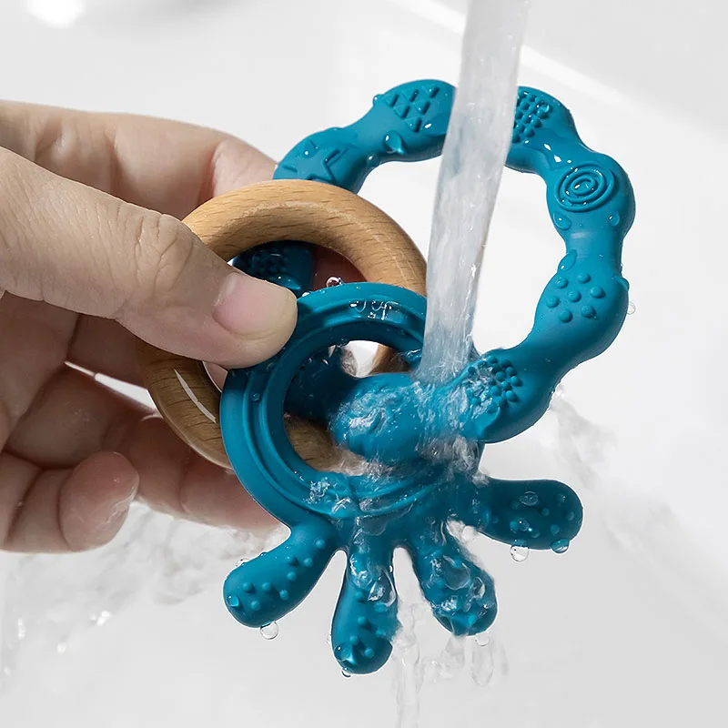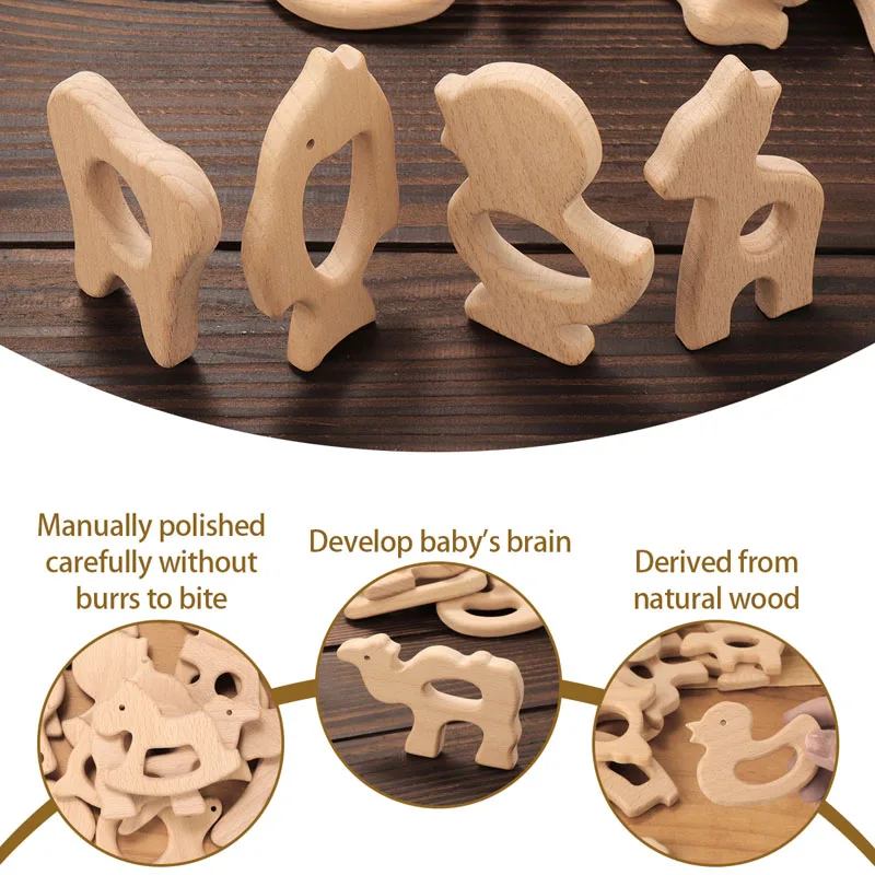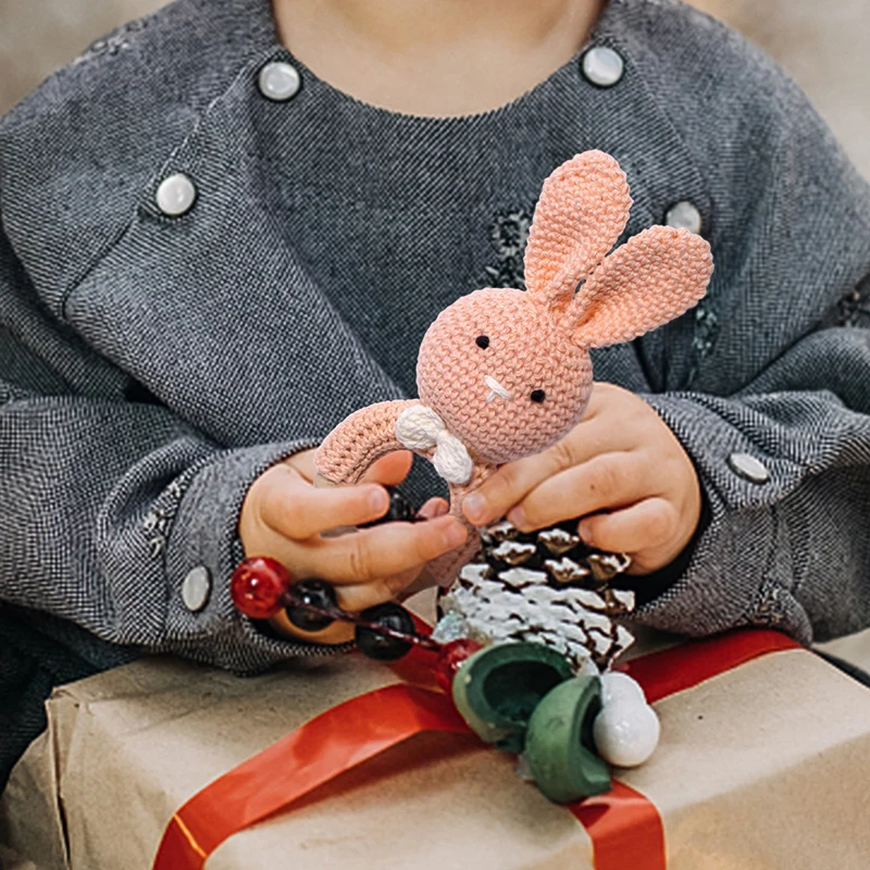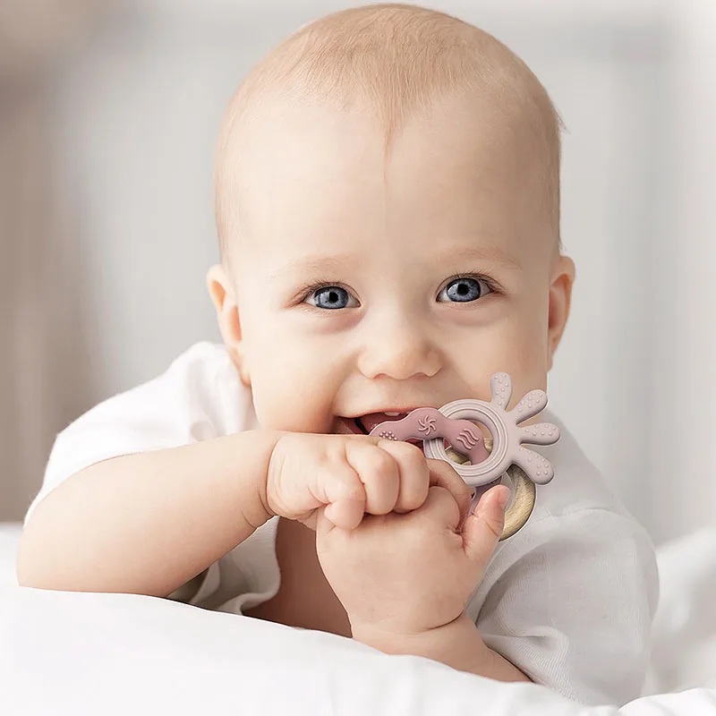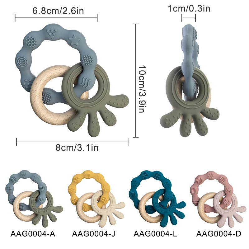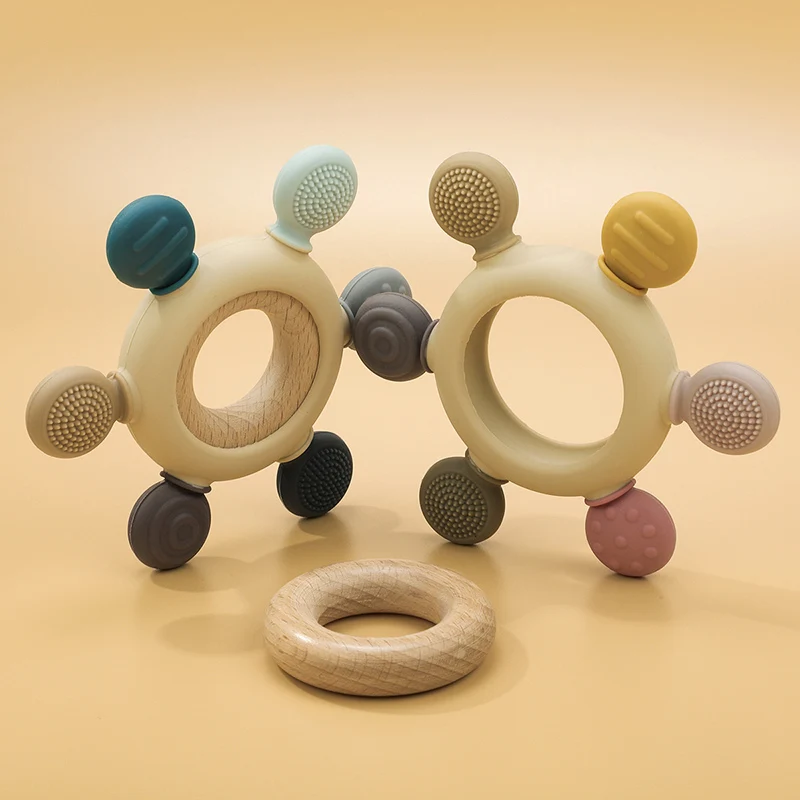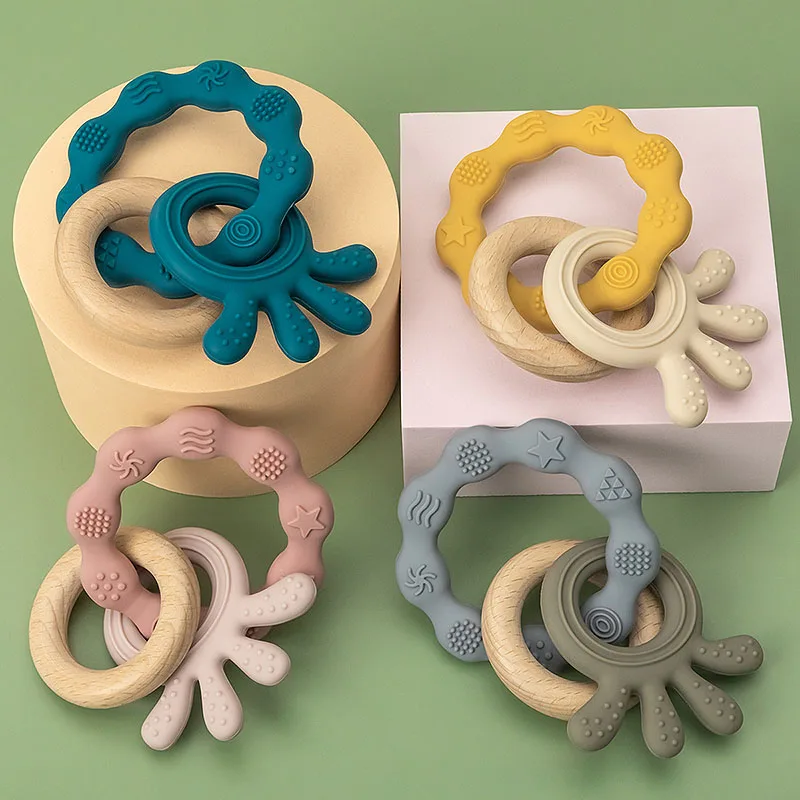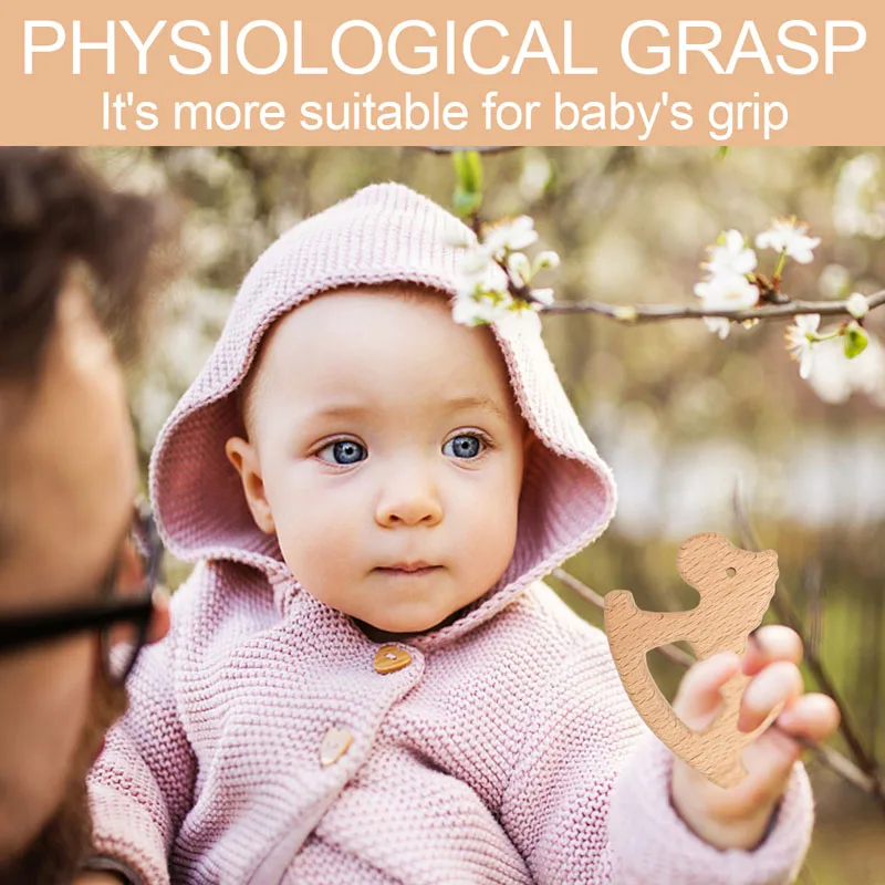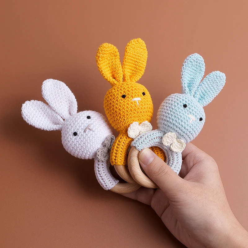TYRY.HU-Mordedor para bebé, juguetes de madera seguros, anillo móvil para cuna, sonajero de ganchillo, pulsera para chupete, sin BPA, 1 unidad