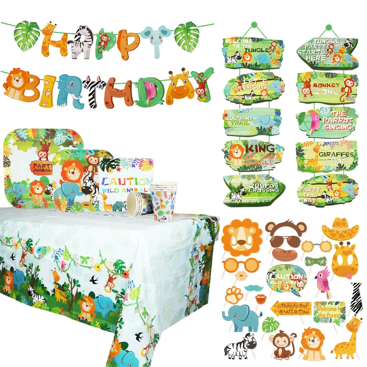 Comprar Vajilla desechable de animales de la selva del bosque, decoración de fiesta de cumpleaños de Safari, temática de jungla para niños, primer cumpleaños, Baby Shower