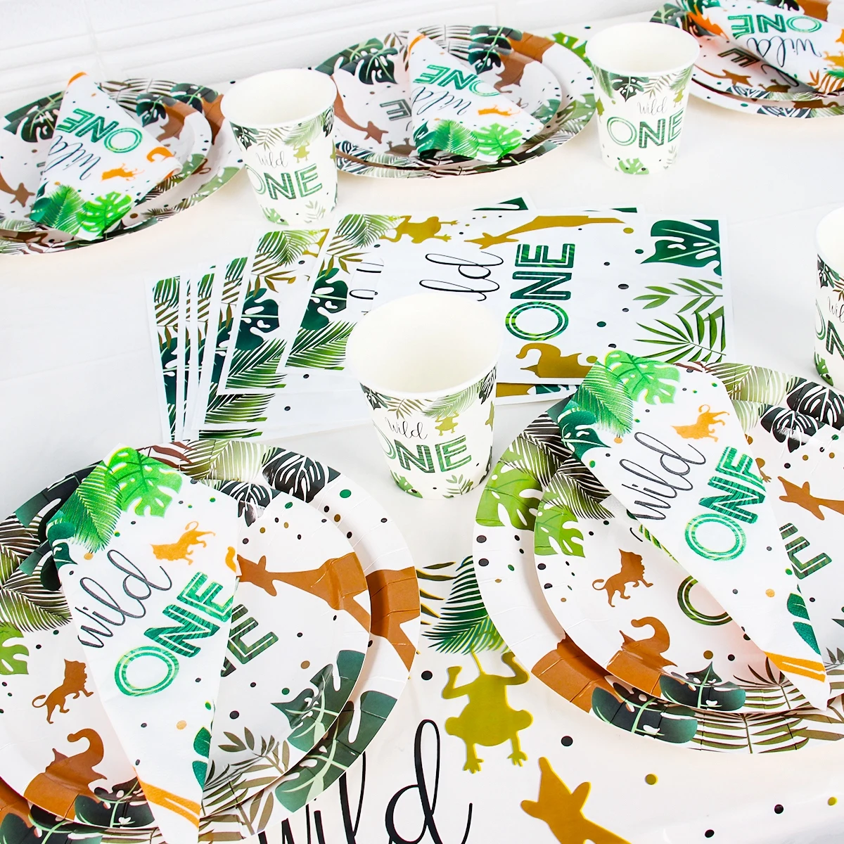 Comprar Vajilla desechable de animales de la selva Wild One, decoración para fiesta de cumpleaños de Safari, suministros para fiesta de bebé