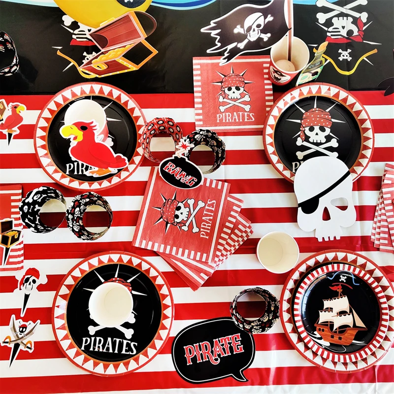 Vajilla desechable para fiesta temática de pirata, decoración de fiesta de cumpleaños de pirata, servilleta, plato, taza, Pancarta, suministros para fiesta de cumpleaños