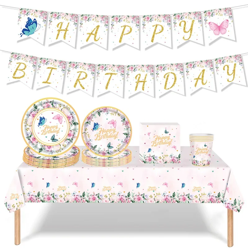 Comprar Vajilla desechable de mariposa decorativa, de feliz cumpleaños decoración de fiesta para niña, Baby Shower