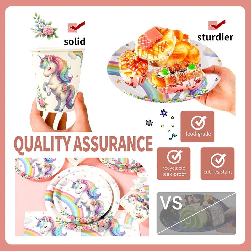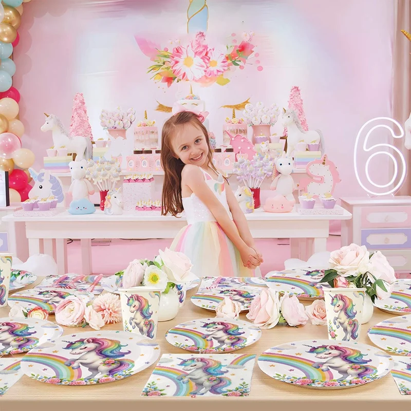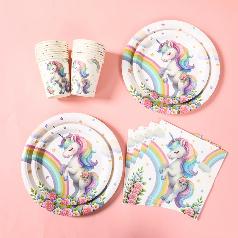 Vajilla desechable con temática de unicornio, plato y vaso de papel, servilleta, feliz cumpleaños, Día de los niños, suministros para fiesta de Baby Shower para niñas