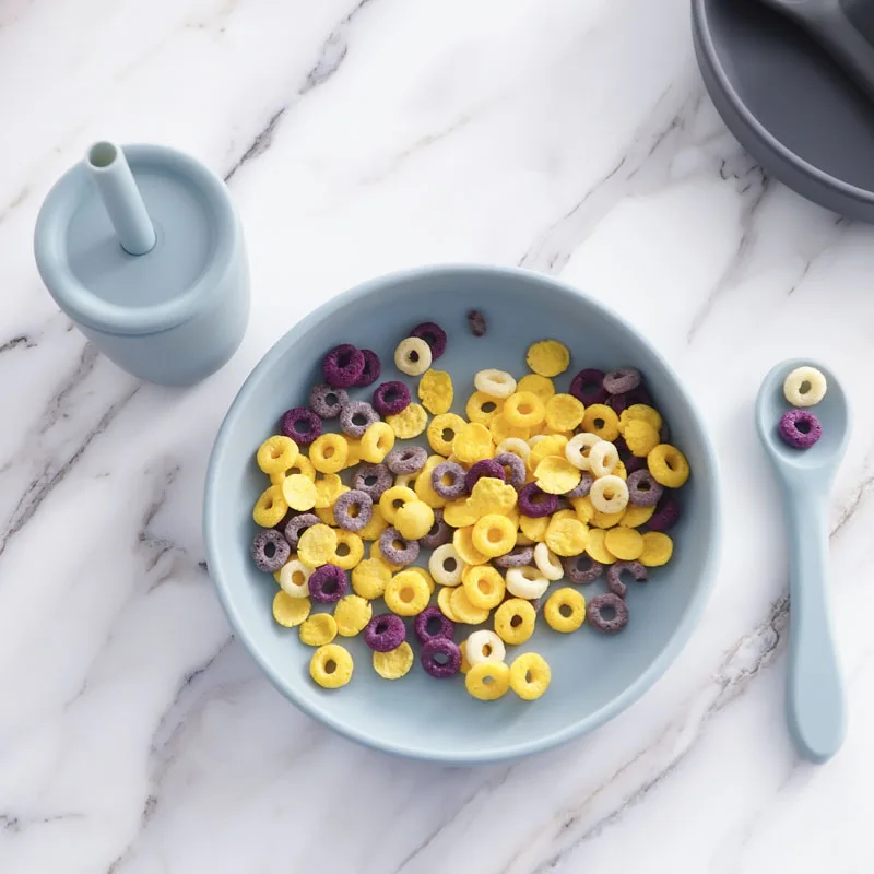 Comprar Vajilla de silicona para niños, platos de comida redondos a la moda, cuenco de entrenamiento impermeable, accesorios para bebés, 100% seguro para alimentos